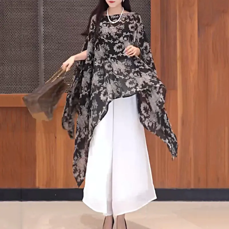衣都精品- 新款時尚氣質雪紡渲染不規則披肩