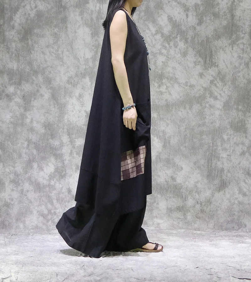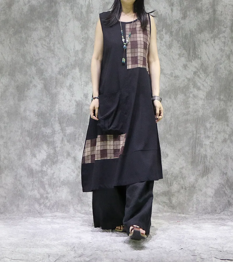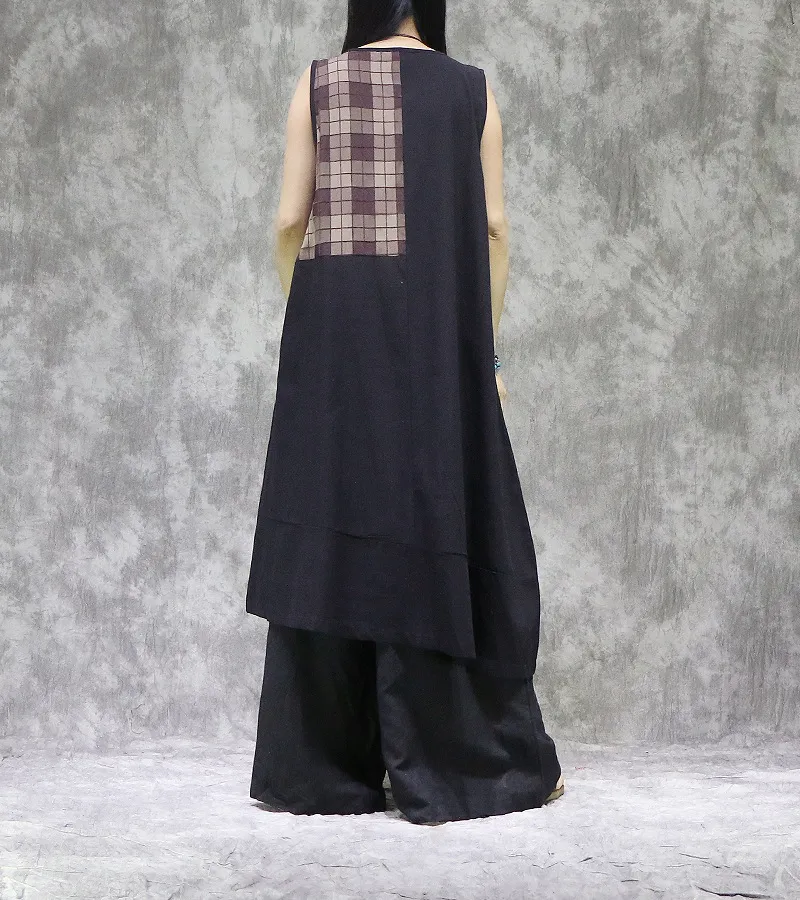 衣都精品- 新款文藝復古拼接寬鬆不規則連衣裙
