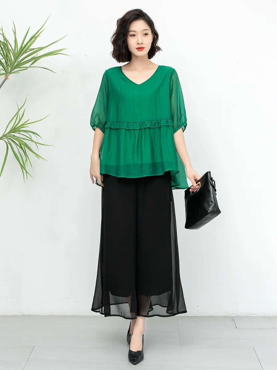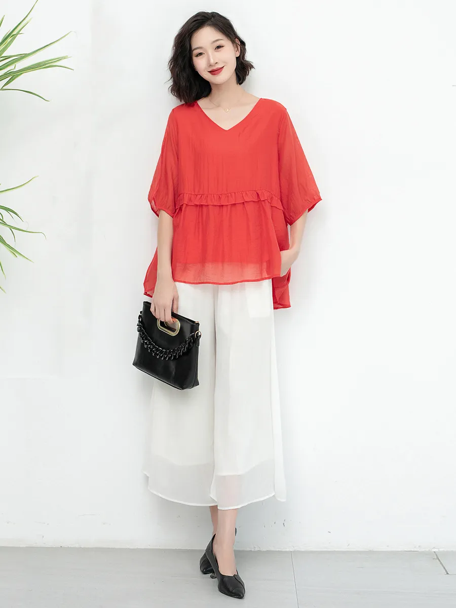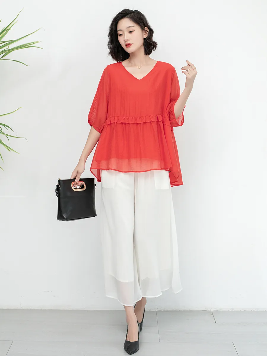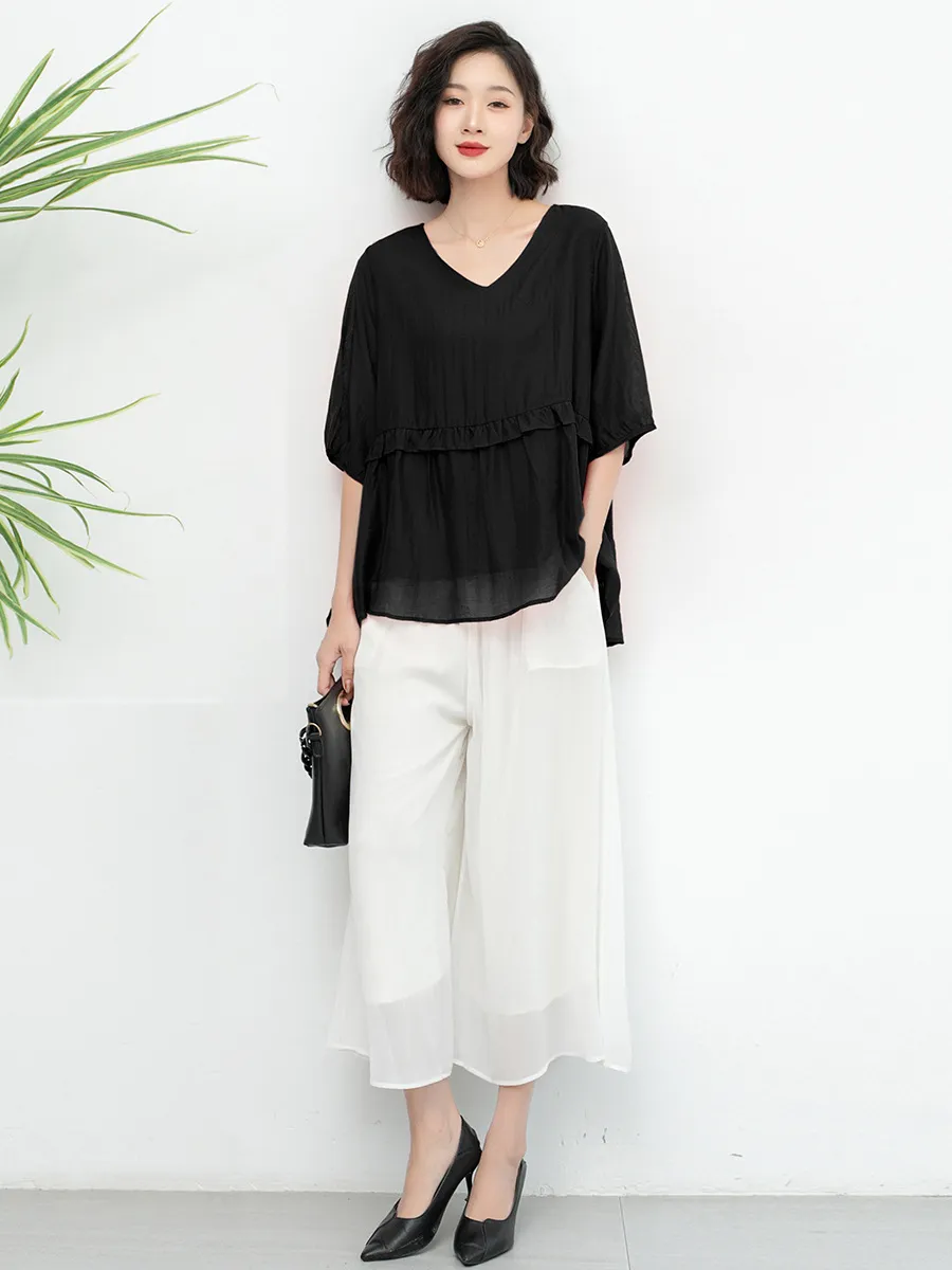 衣都精品- 新款氣質寬鬆大碼木耳花邊減齡上衣