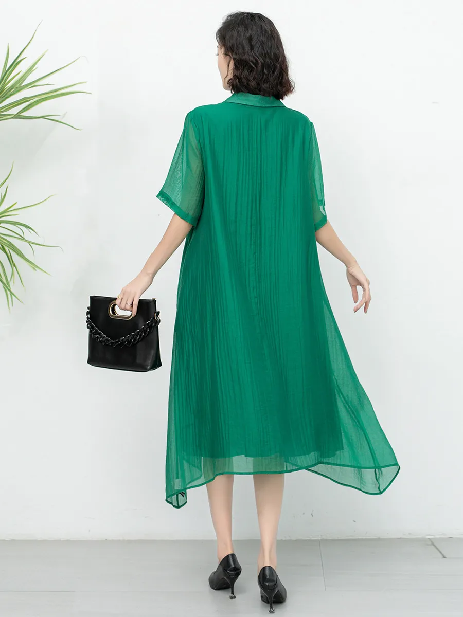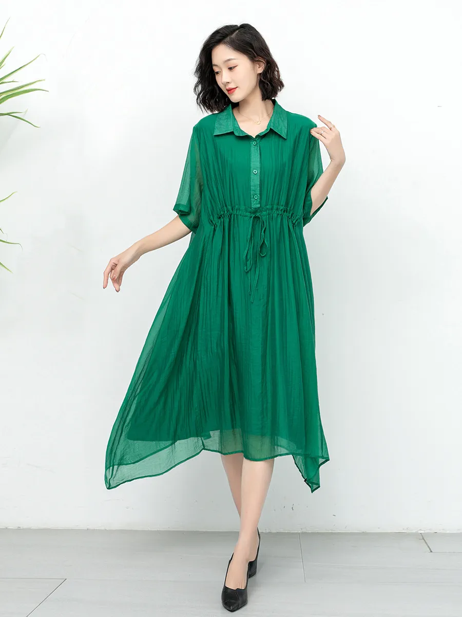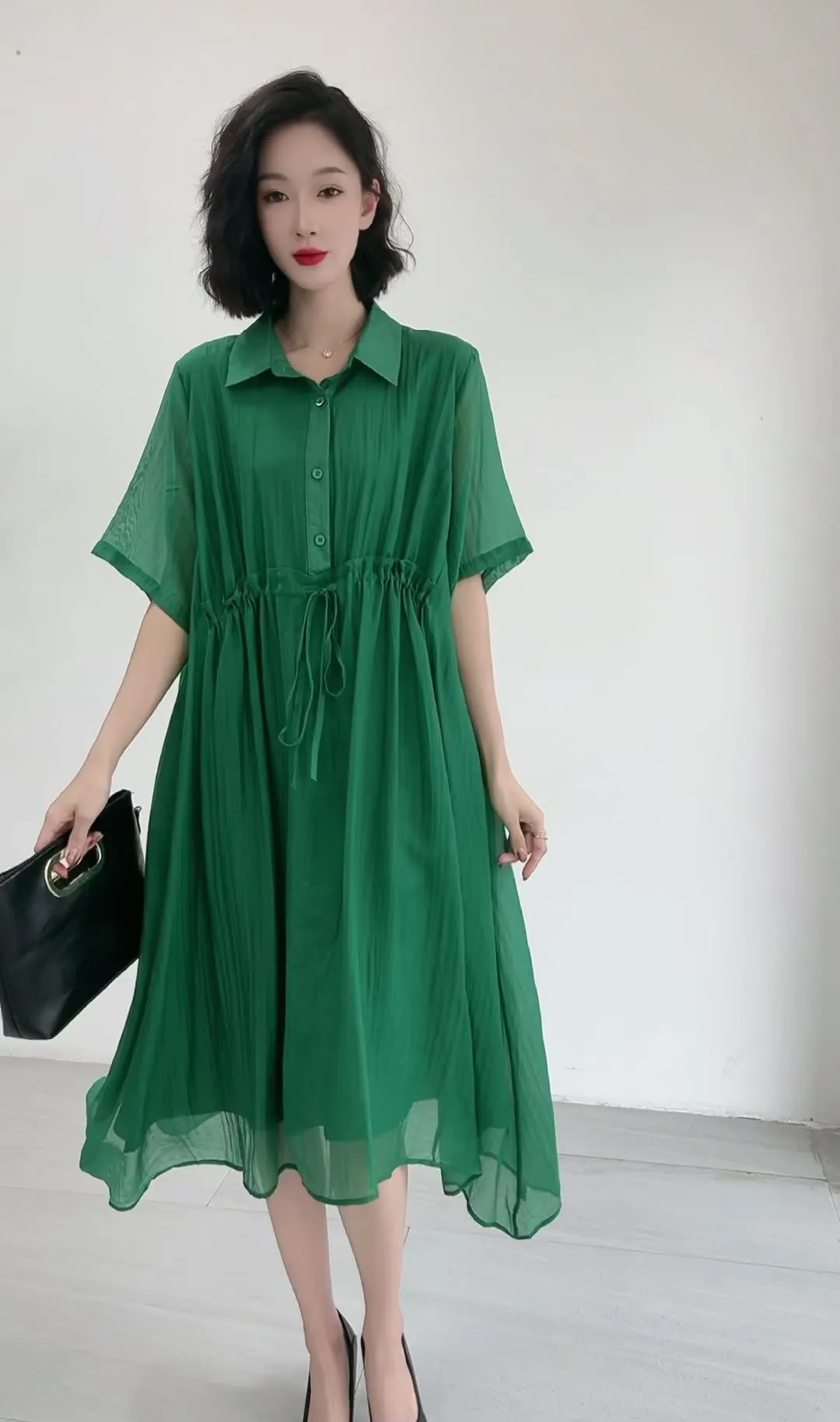 衣都精品- 新款文藝復古真絲雪紡不規則大擺連衣裙