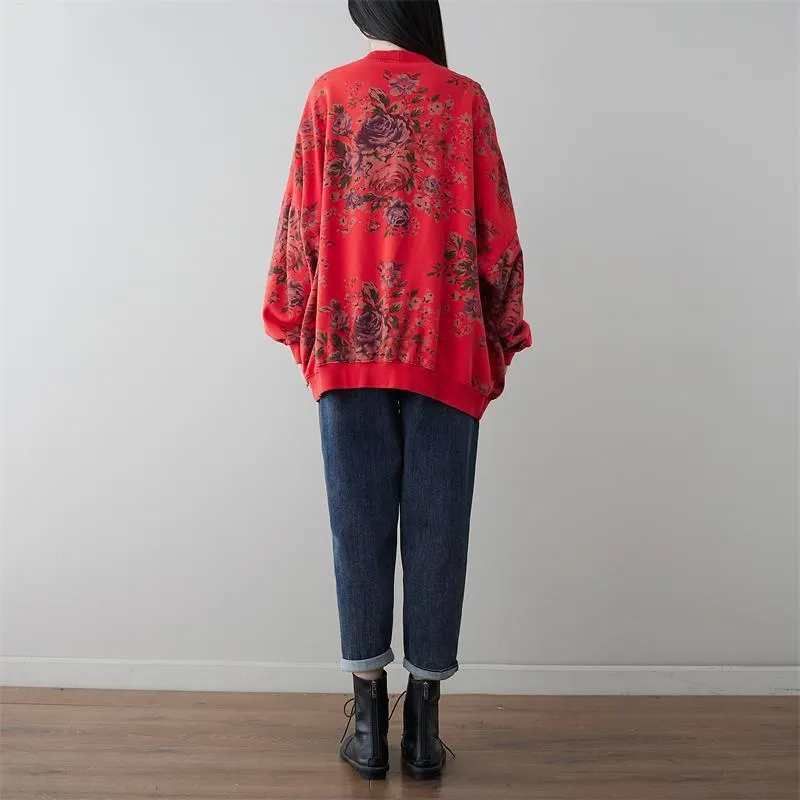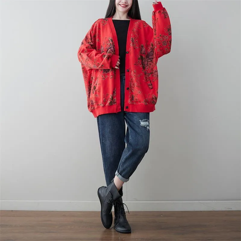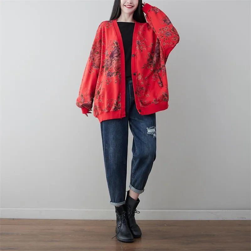 衣都精品- 新款大碼寬鬆碎花單排扣開衫外套