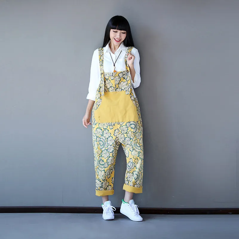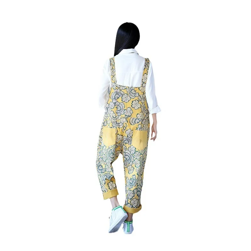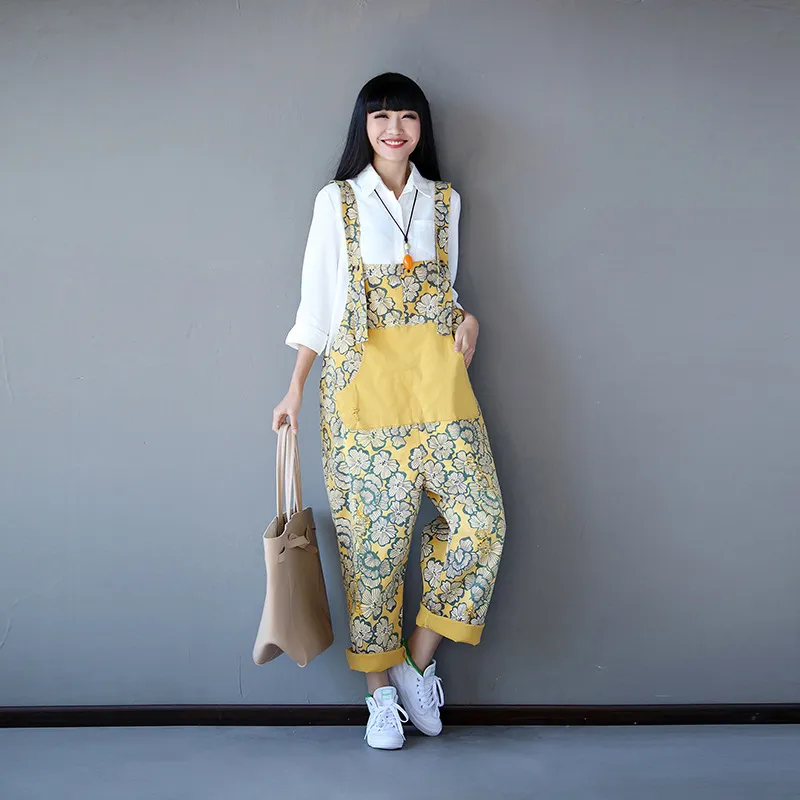 衣都精品- 新款文藝小碎花可調節吊帶哈倫褲