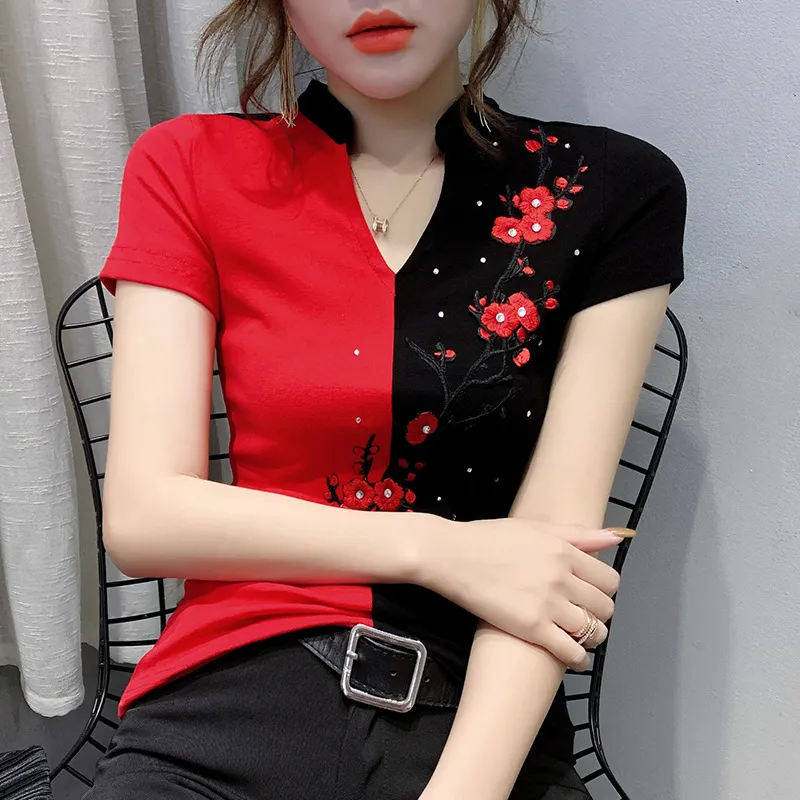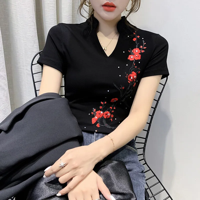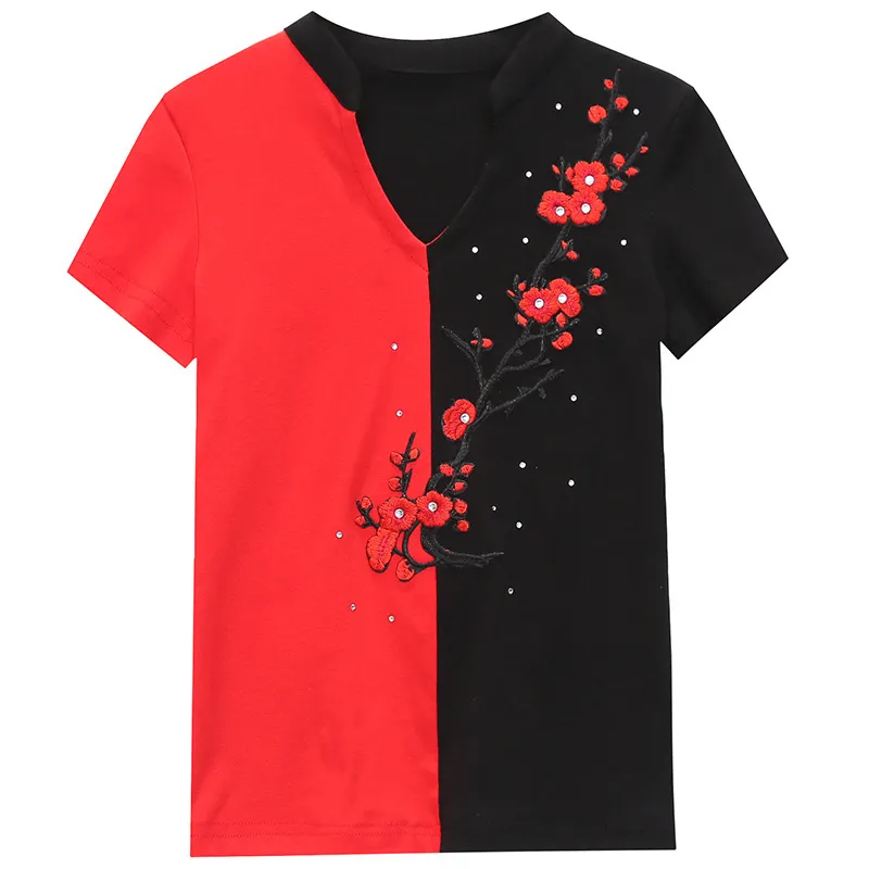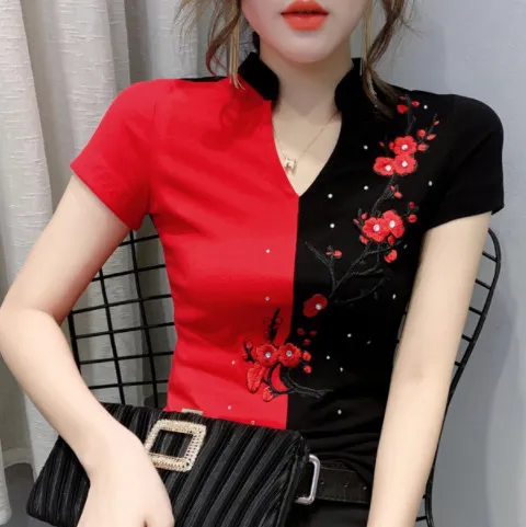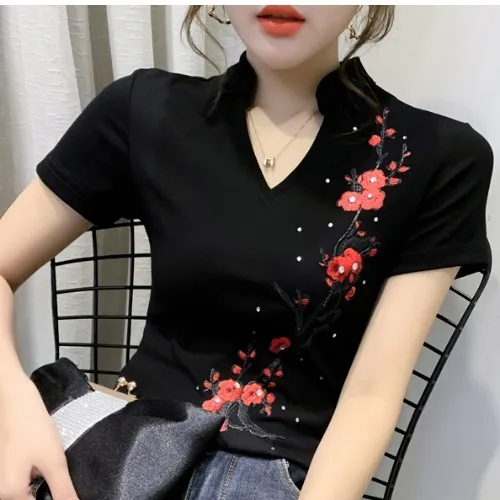 衣都精品- 2021春季新款文藝中國風梅花短袖上衣