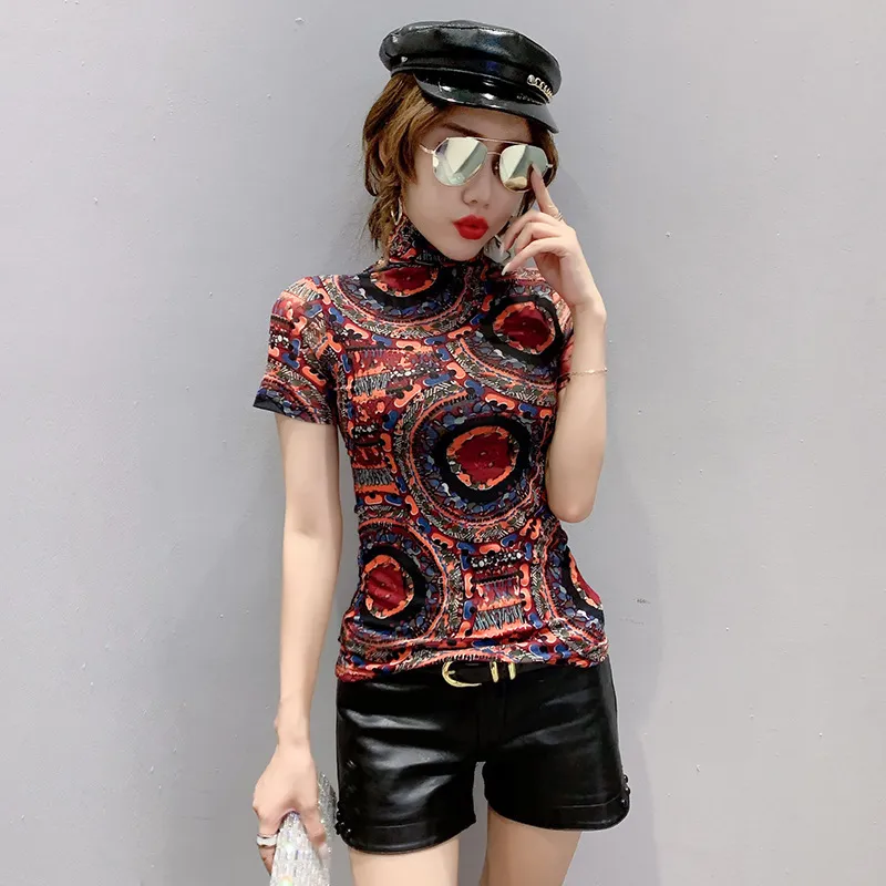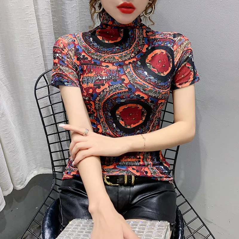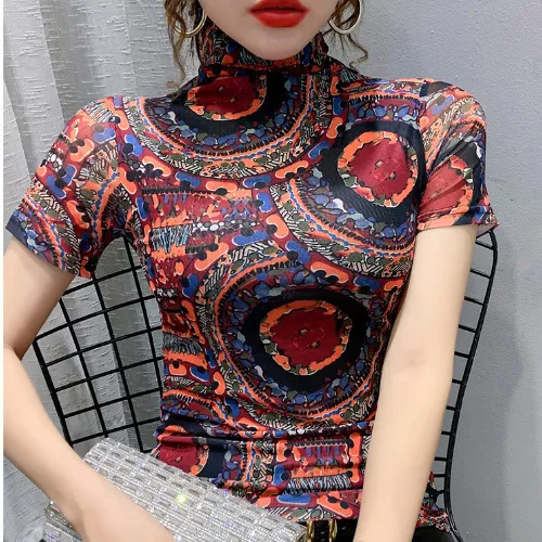 衣都精品- 2021春季新款復古提花圖案高領上衣