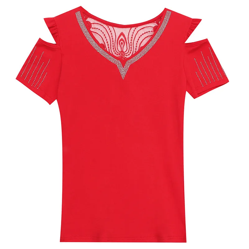 衣都精品- 2021春季新款重工燙鑽網紗拼接針織衫