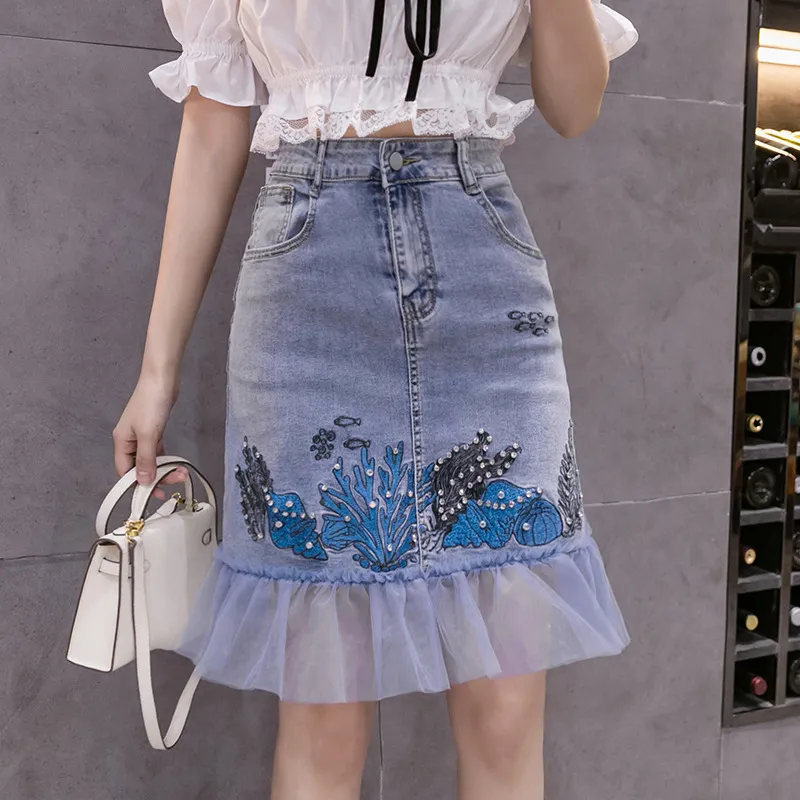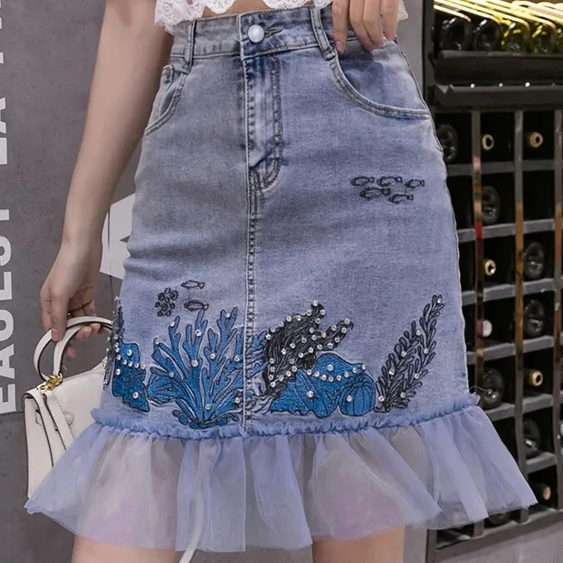 衣都精品- 2021春季新款個性刺繡海草魚尾半身裙