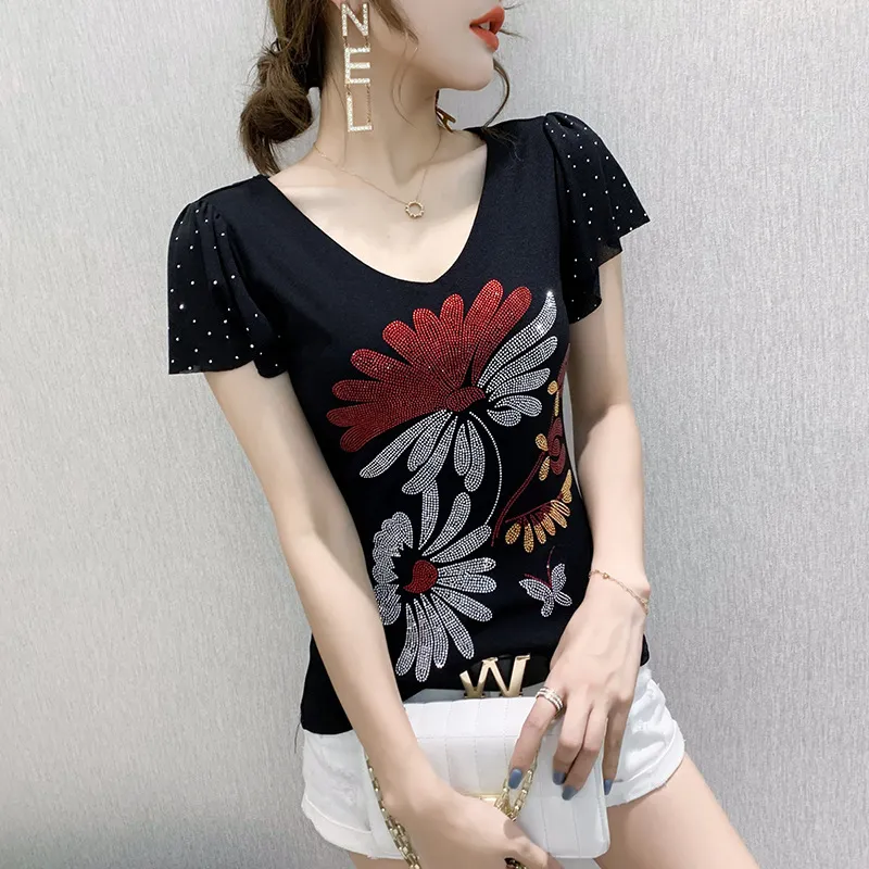 衣都精品- 2021春季新款歐洲重工短袖網紗拼接上衣