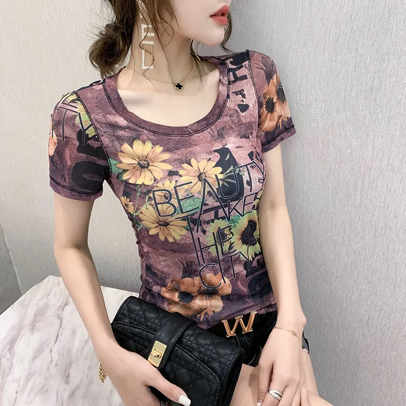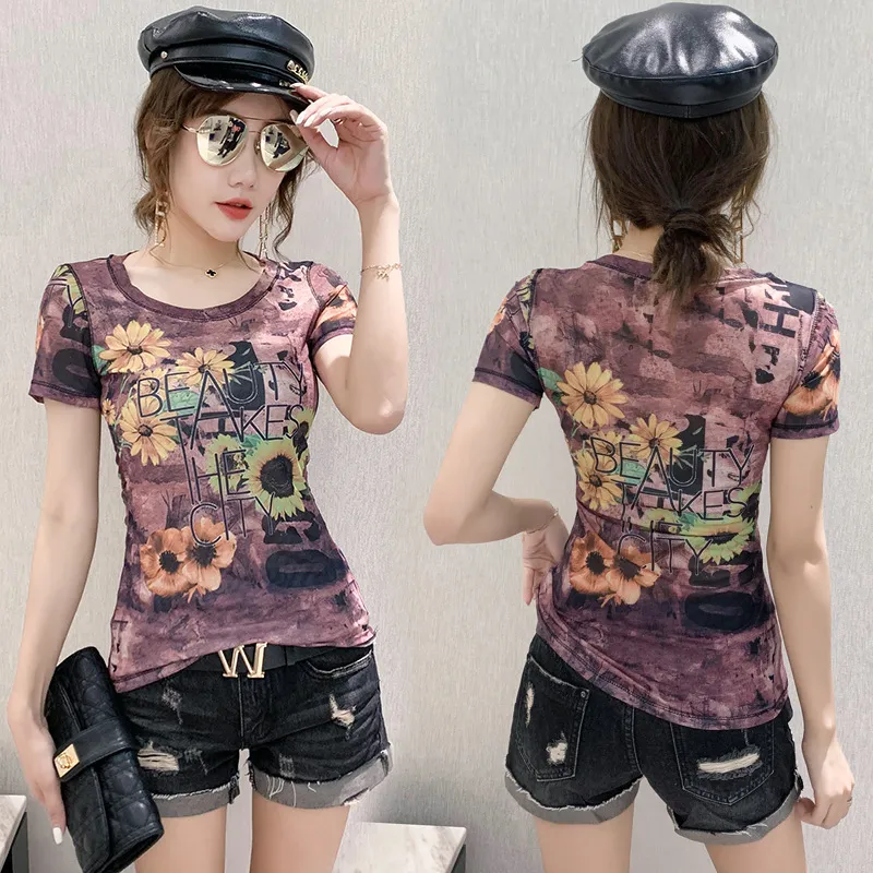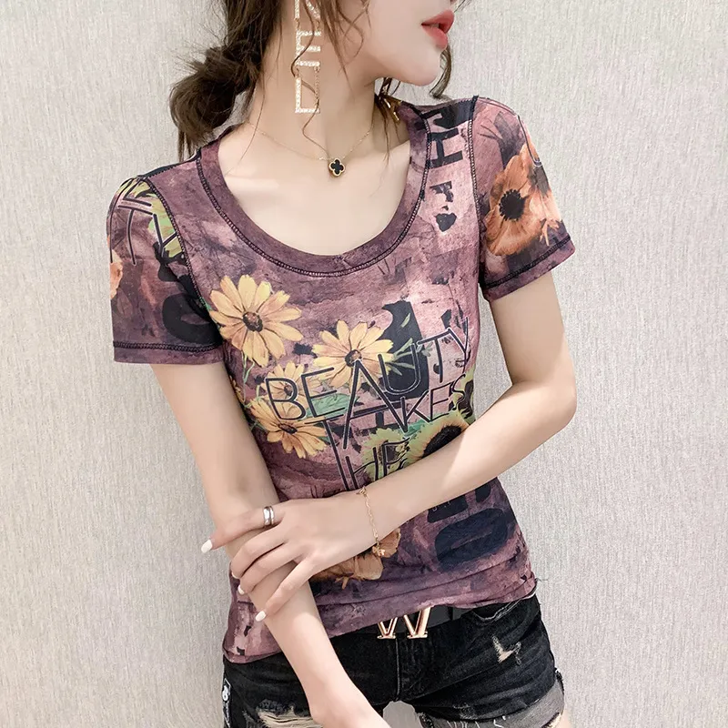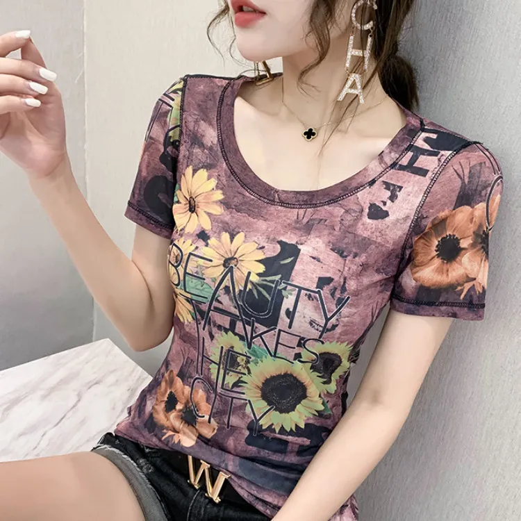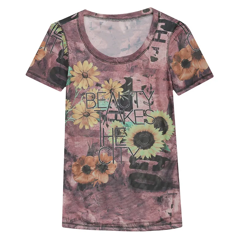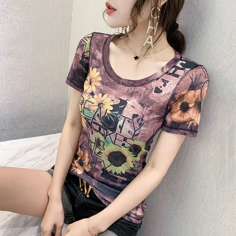 衣都精品- 2022春夏新款向日葵印花短袖上衣