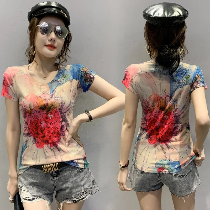 衣都精品- 2022春夏新款田園風大花朵短袖薄款上衣