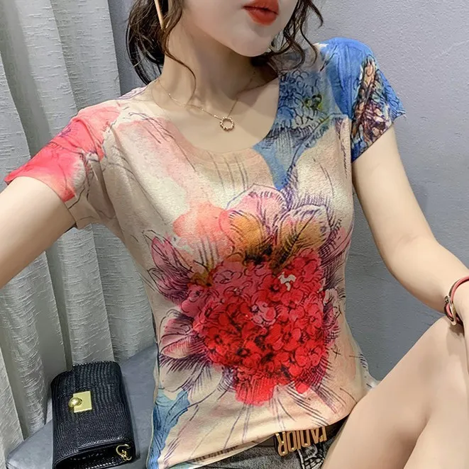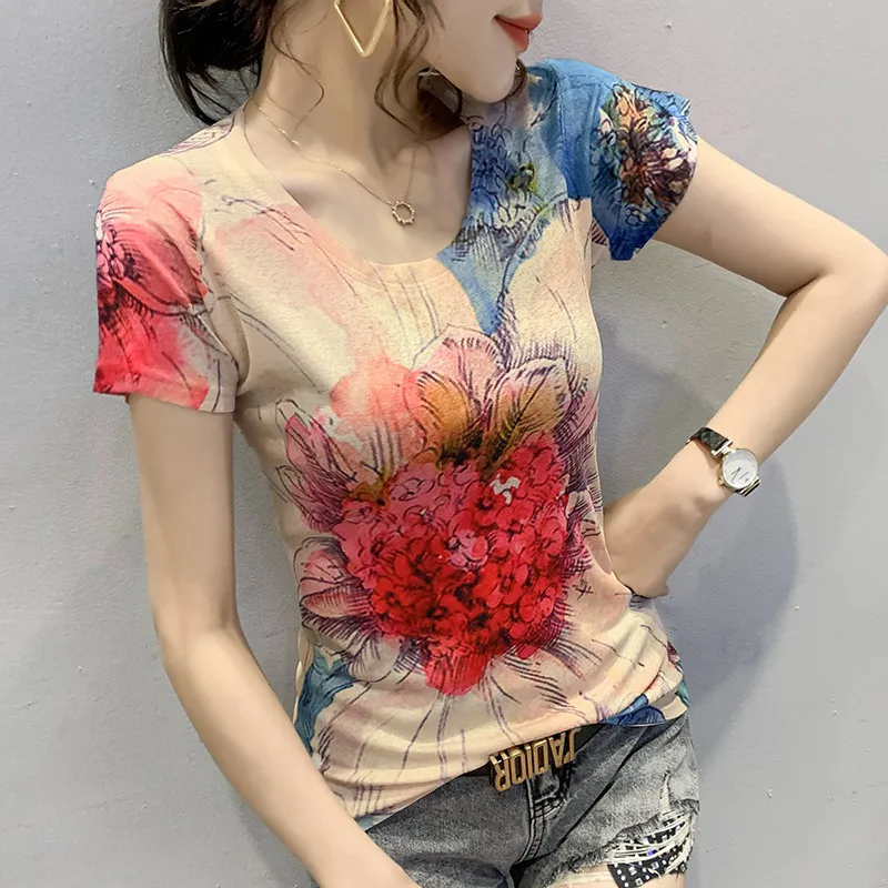 衣都精品- 2022春夏新款向日葵印花短袖上衣