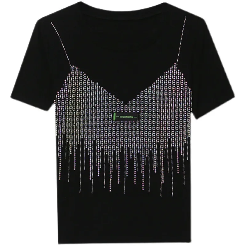 衣都精品- 2022春夏新款歐貨重工燙鑽假兩件套吊帶上衣