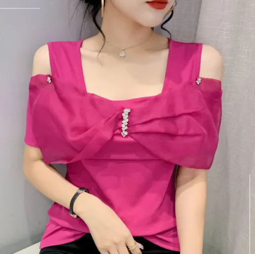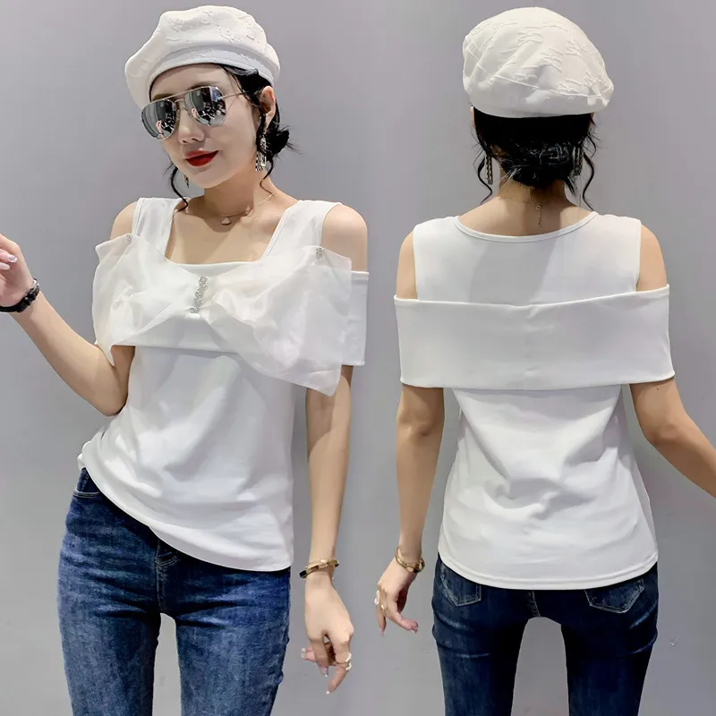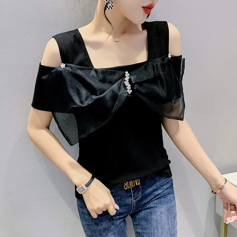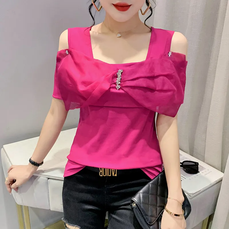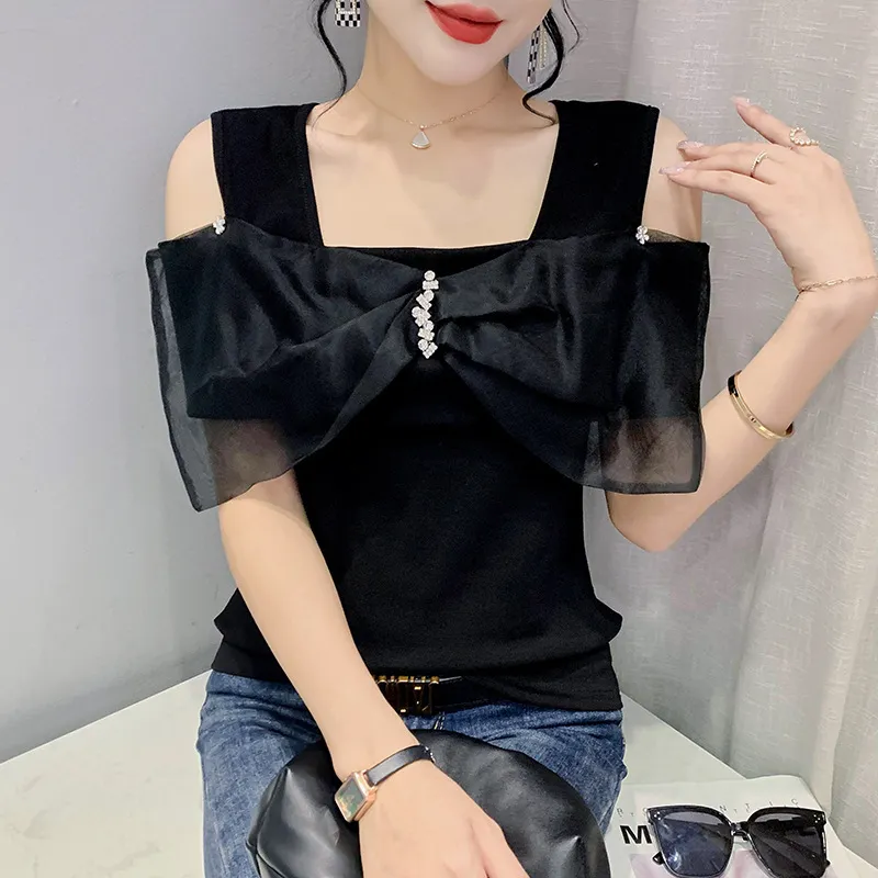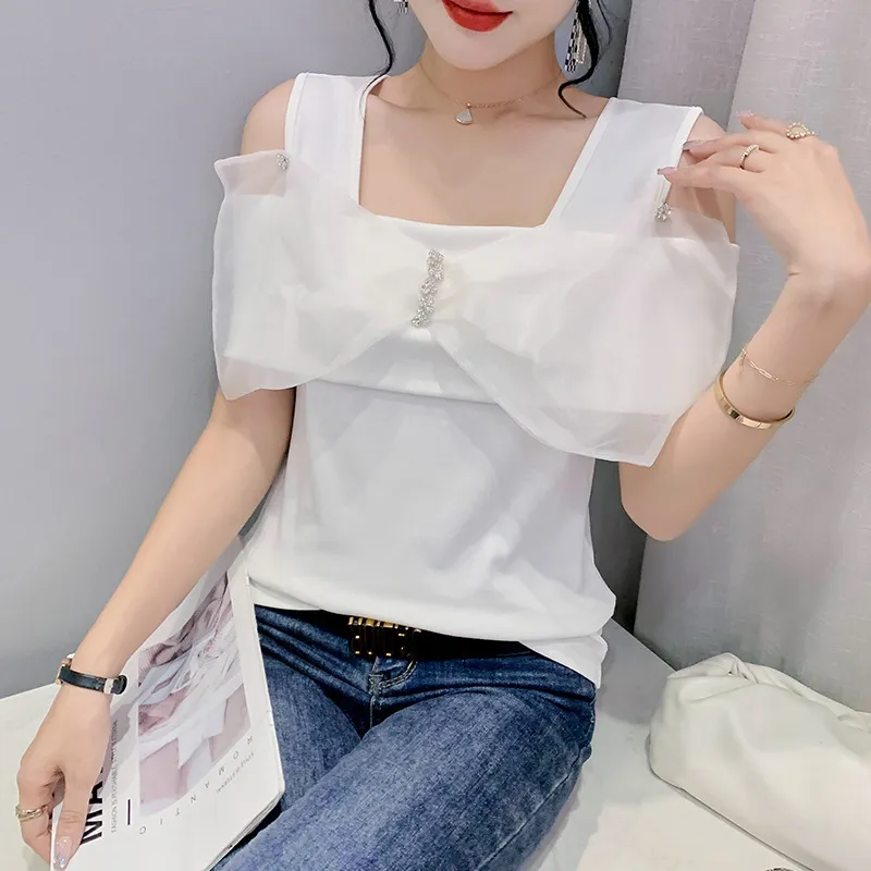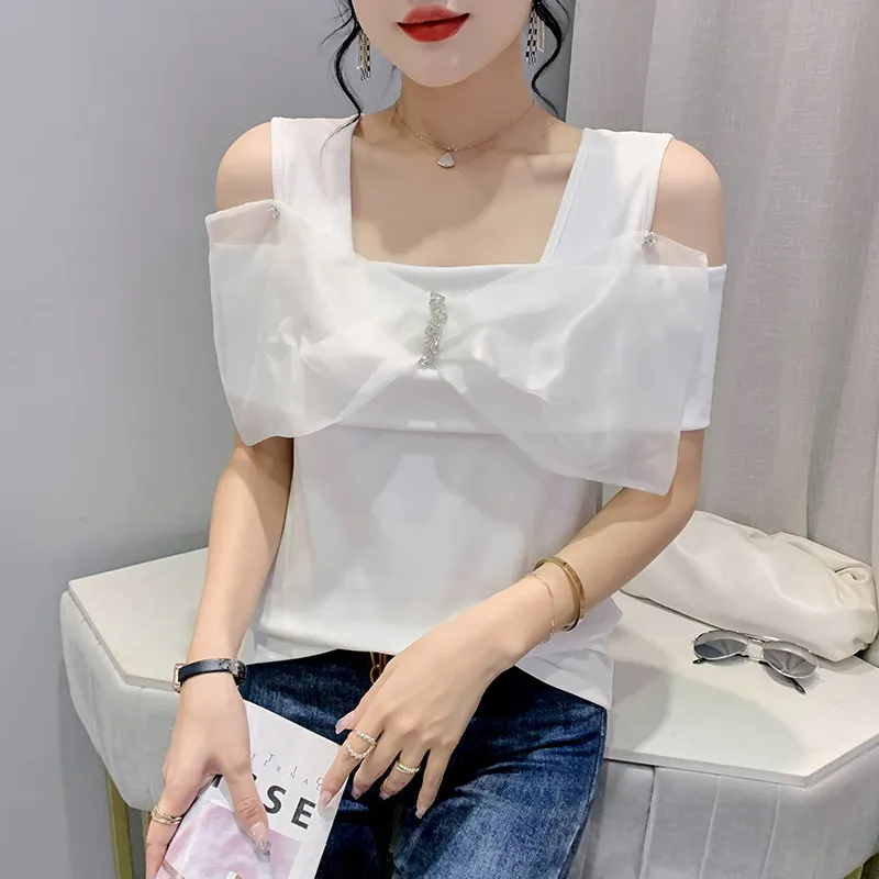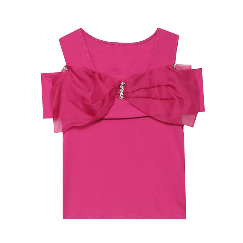 衣都精品- 2022春夏新款大蝴蝶結方領露肩吊帶上衣