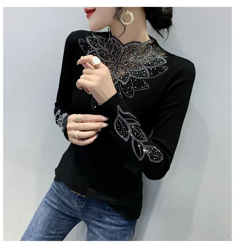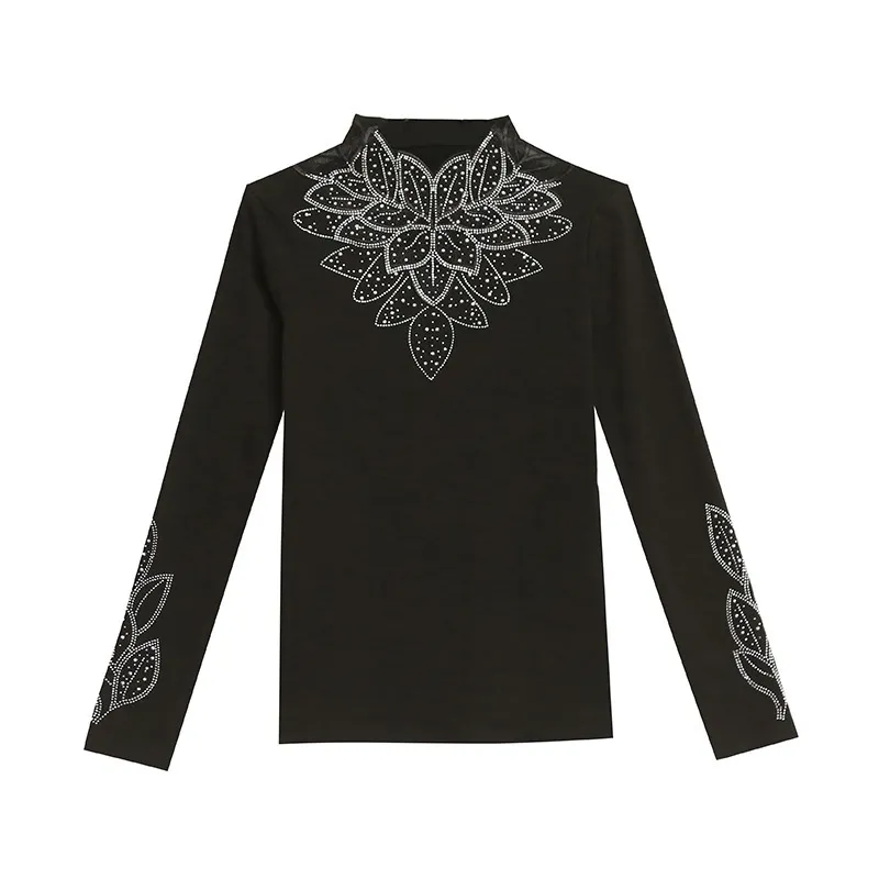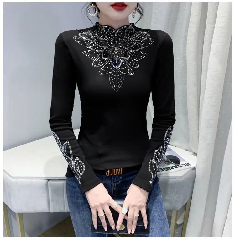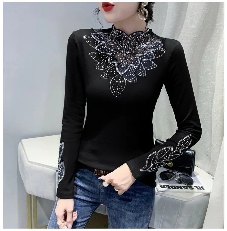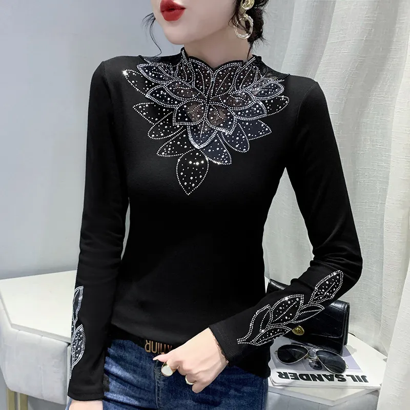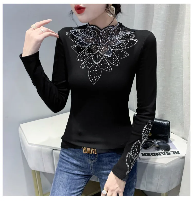 衣都精品- 2022秋冬新款慵懶氣質層層樹葉花朵亮鑽上衣