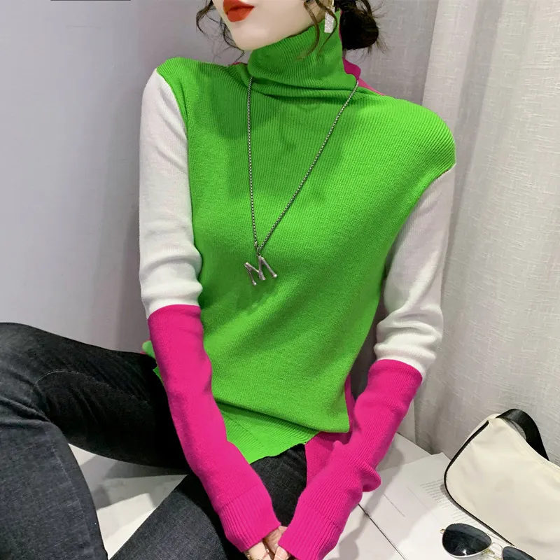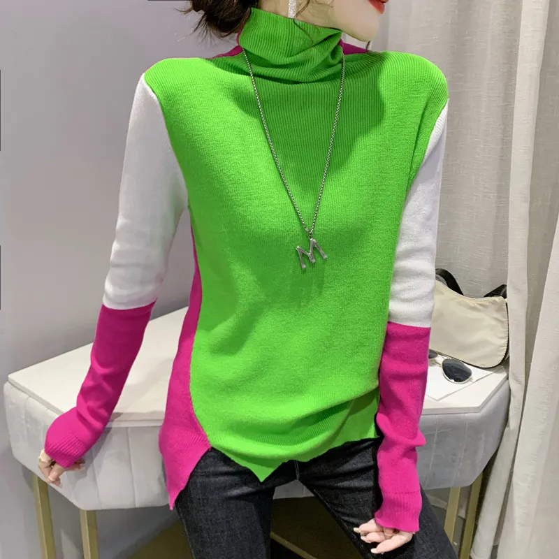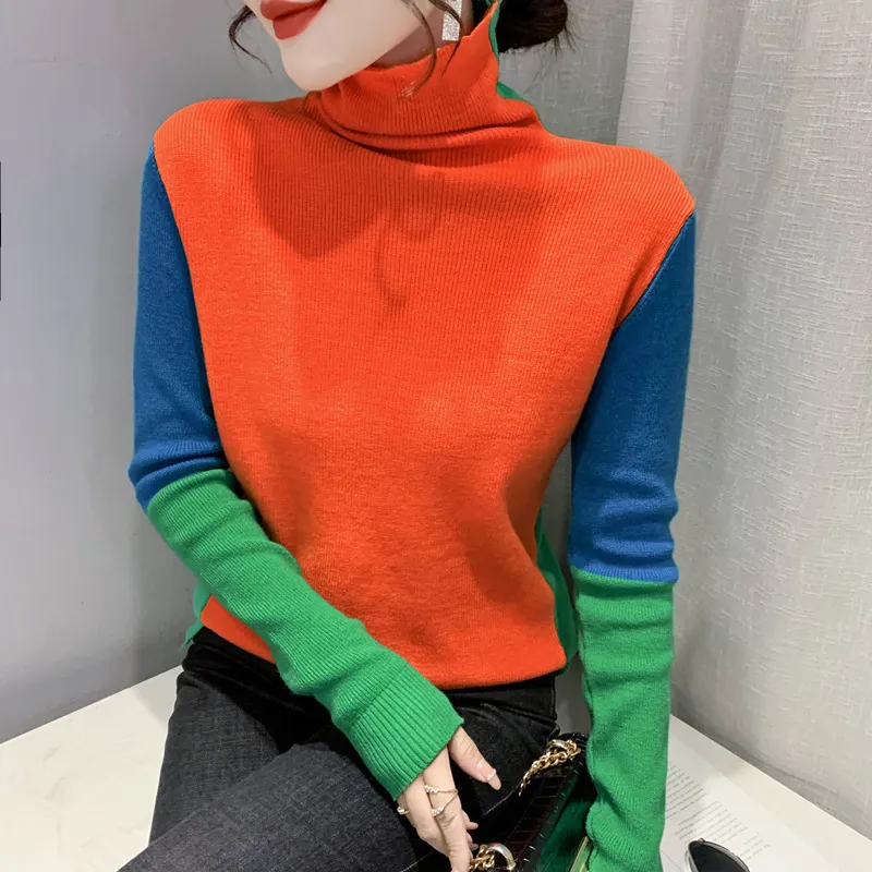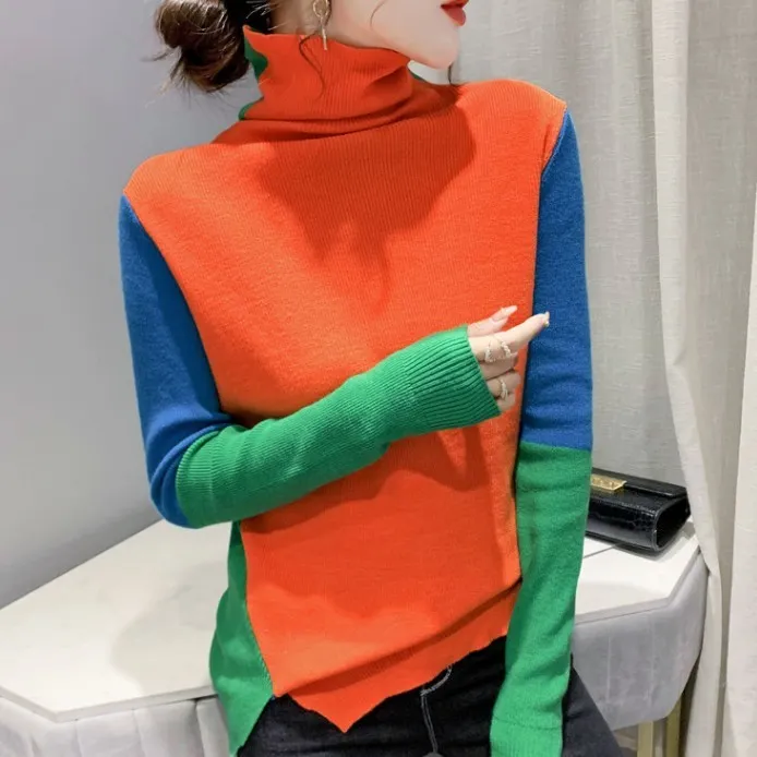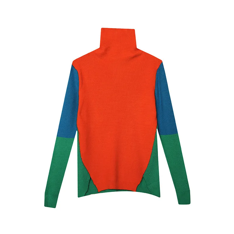 衣都精品- 2022秋冬新款歐風潮流拼接撞色高領毛衣上衣