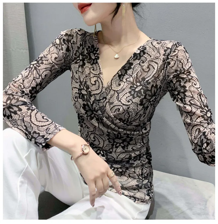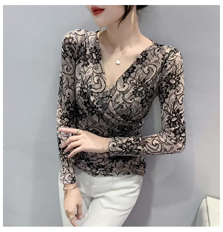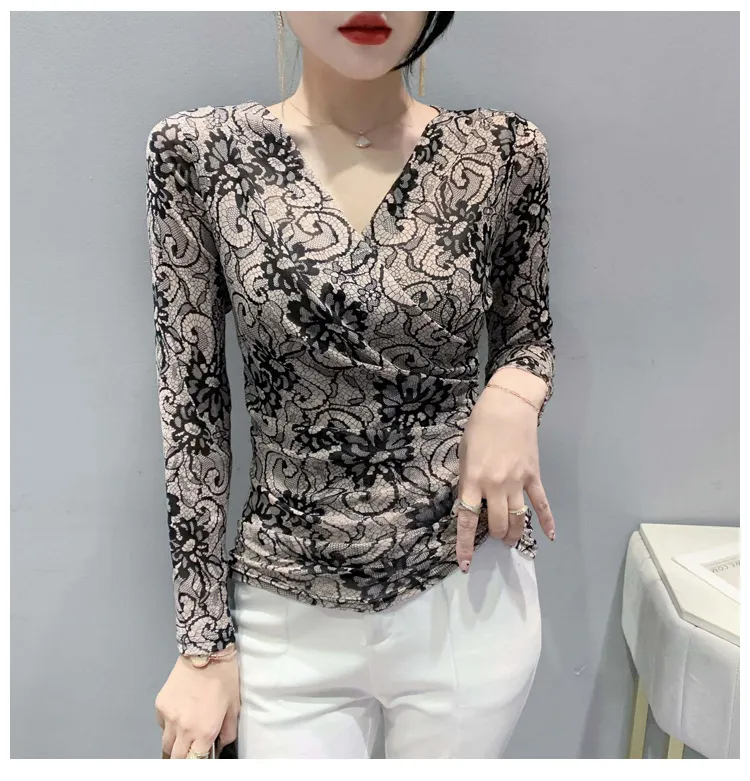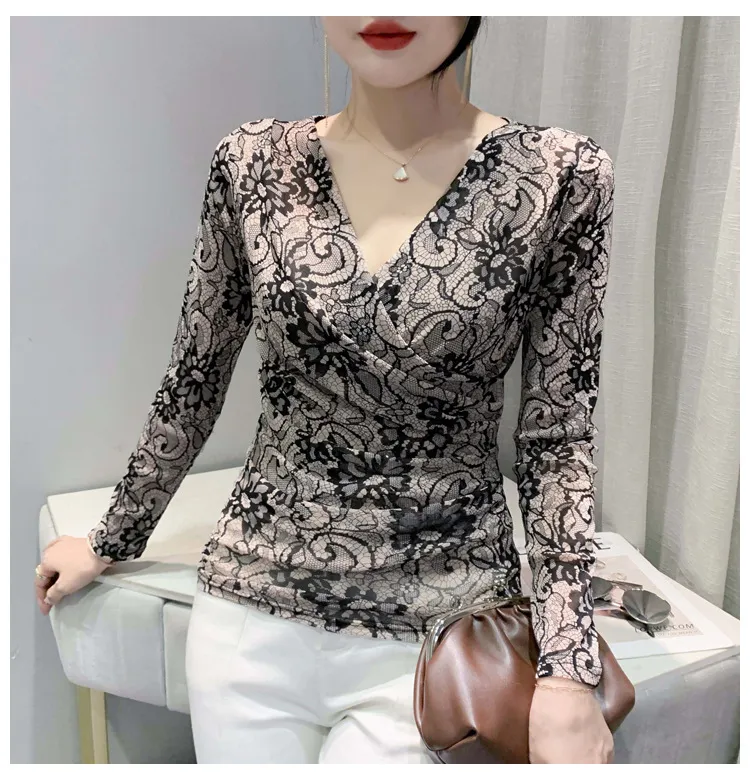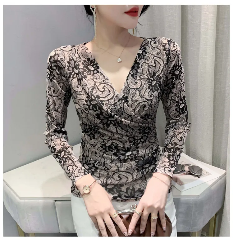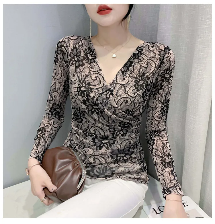 衣都精品- 2022冬季新款蕾絲花邊收腰刺繡花朵上衣