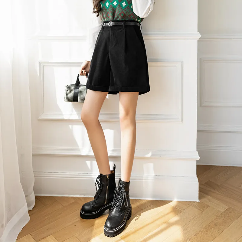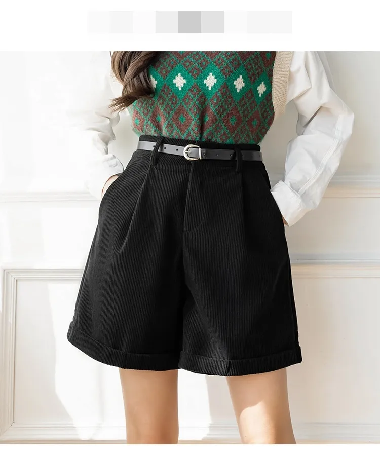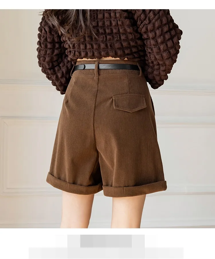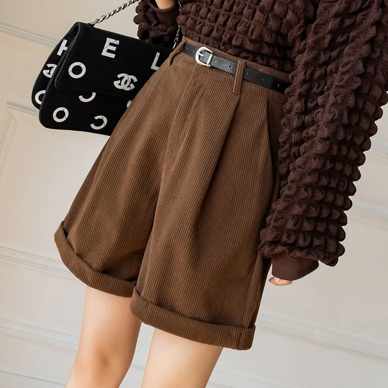 衣都精品- 2022冬季新款復古文藝捲邊燈芯絨闊腿褲