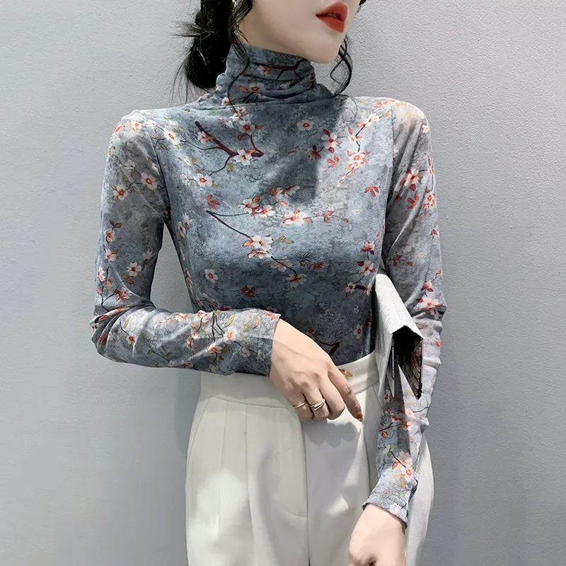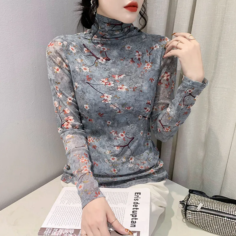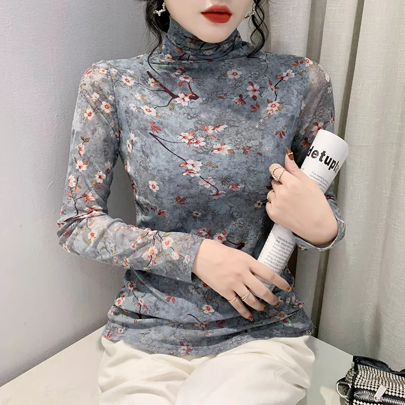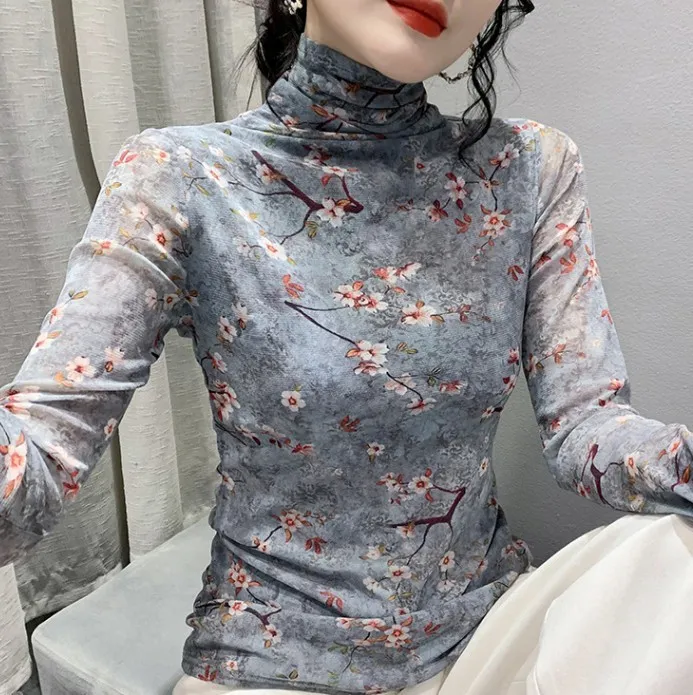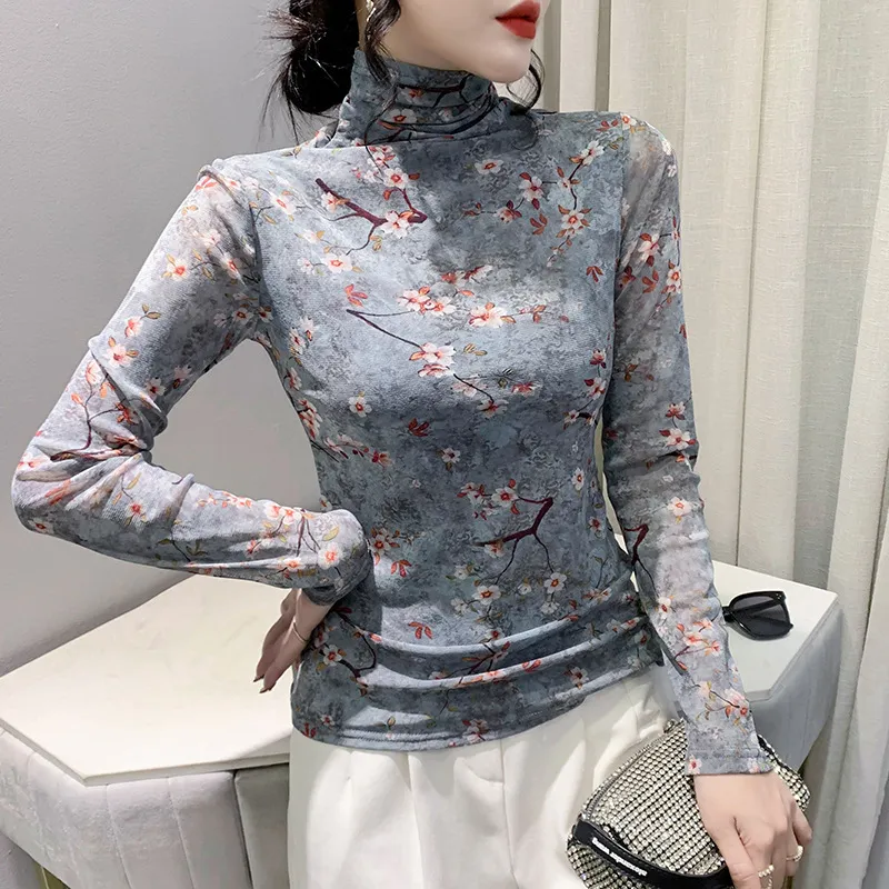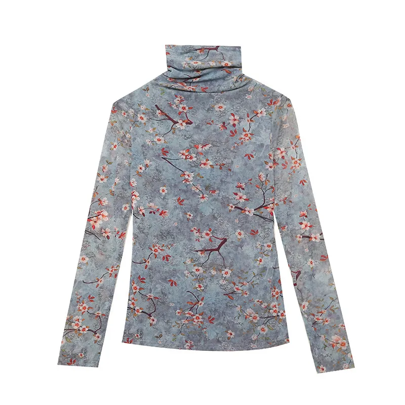 衣都精品- 2022冬季新款小花朵樹葉油畫高領打底上衣