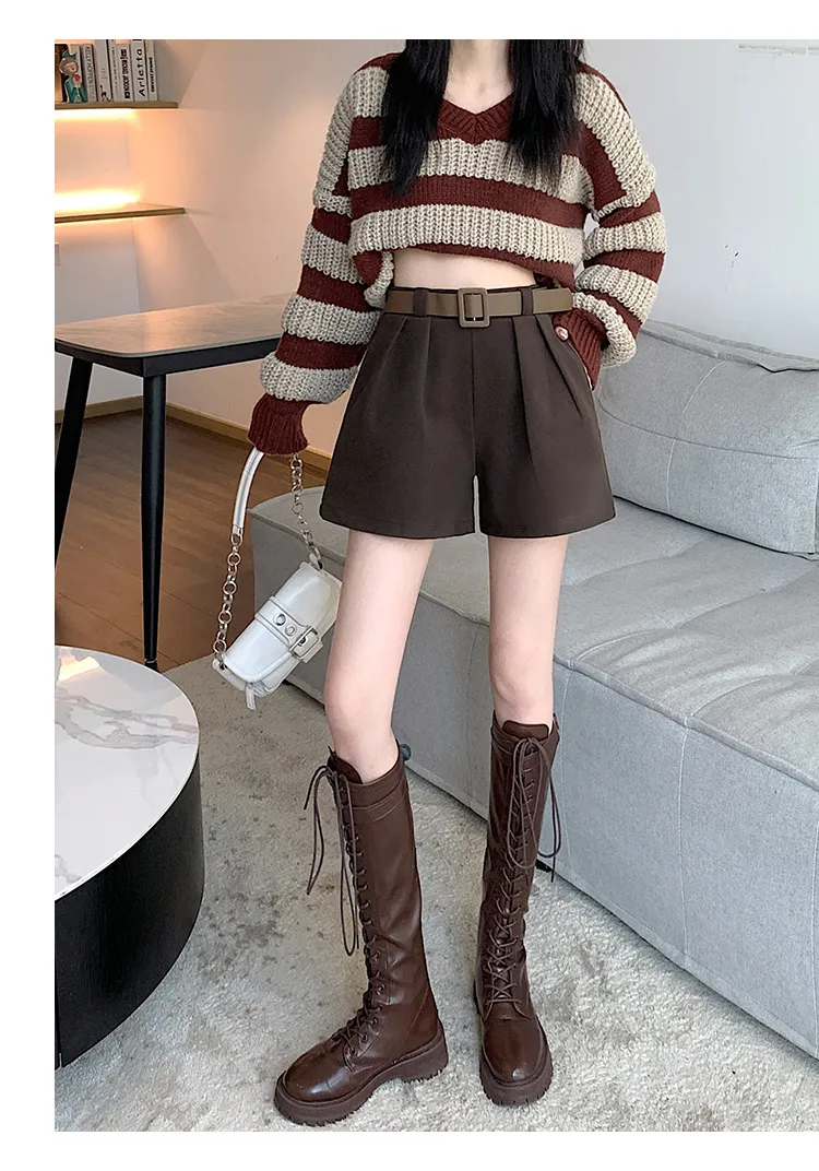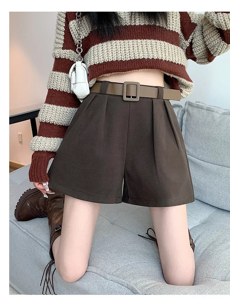 衣都精品- 2022冬季新款韓版休閒風高腰褶皺闊腿褲