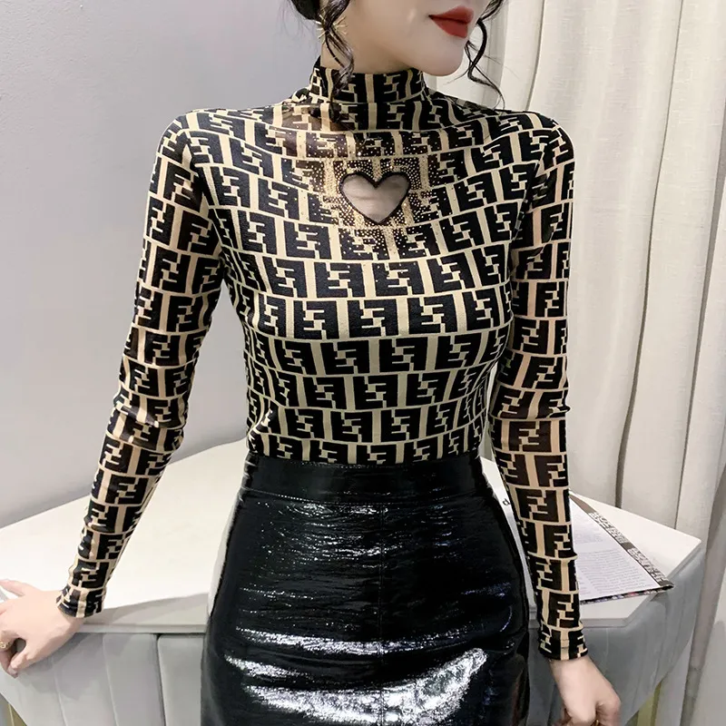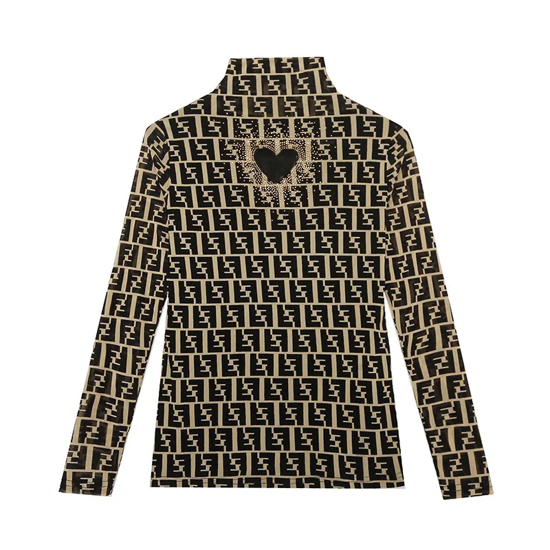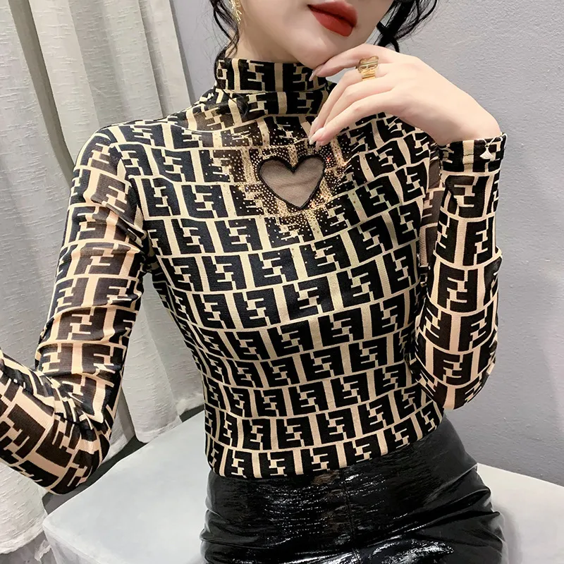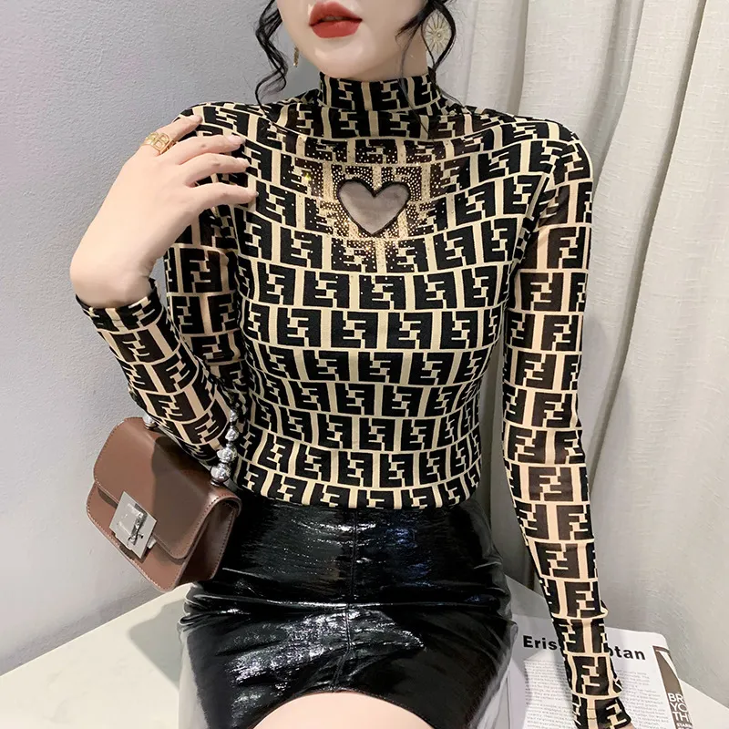 衣都精品- 2022冬季新款燙鑽愛心形字母斜紋打底衫上衣