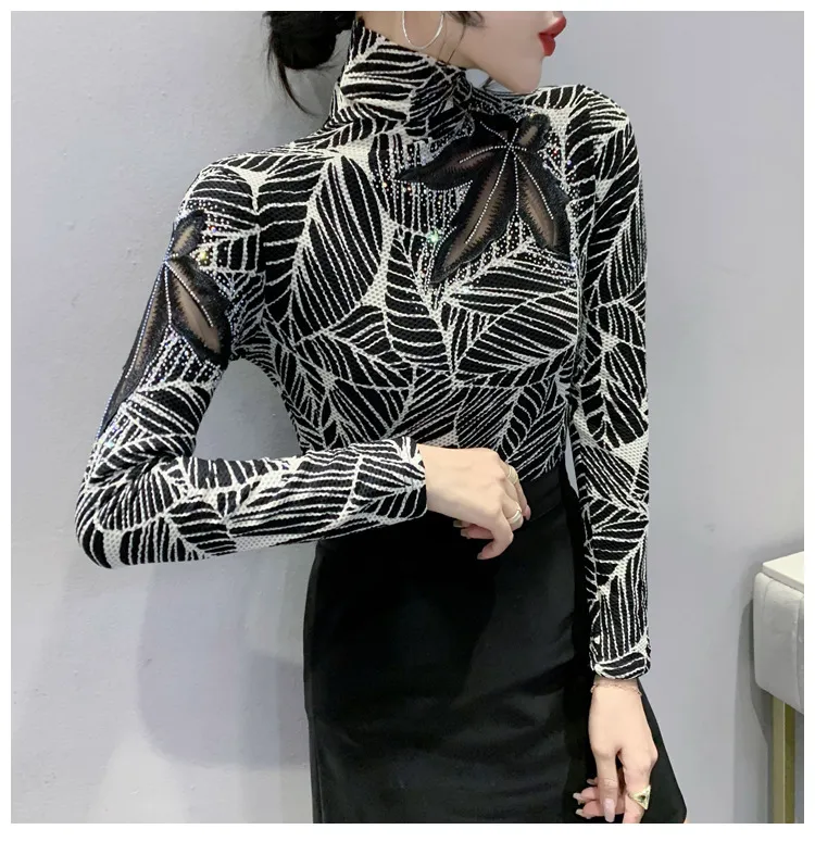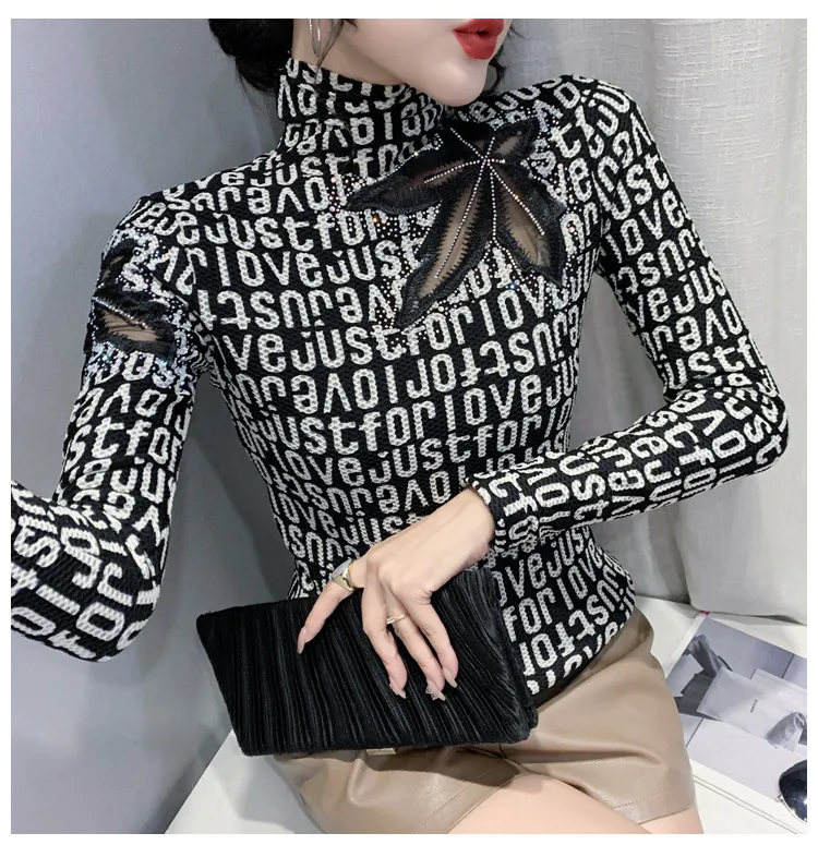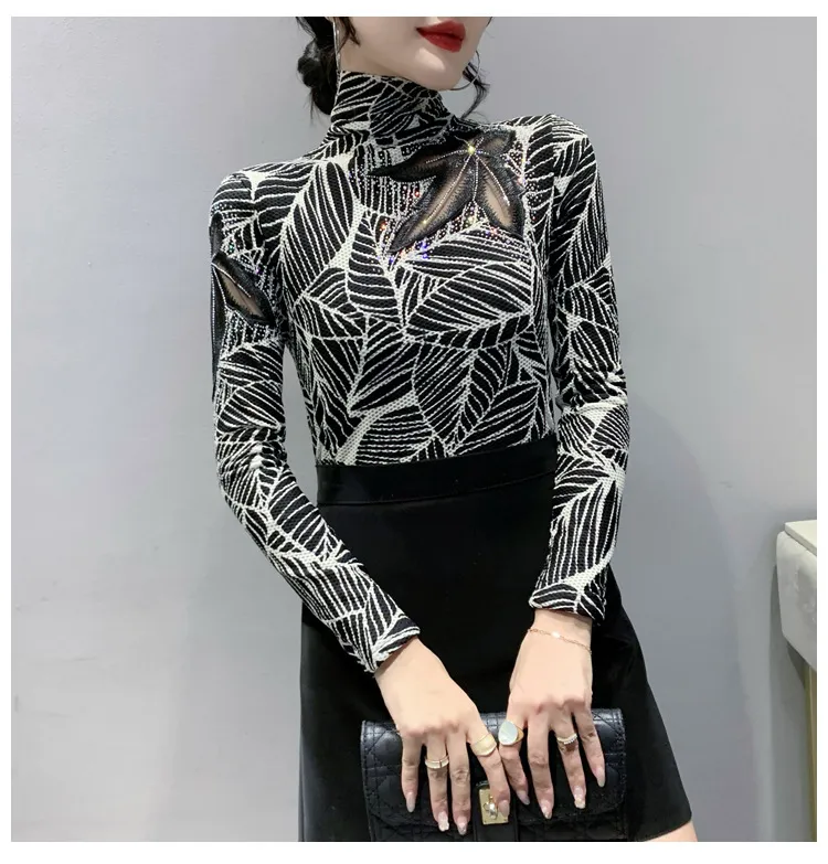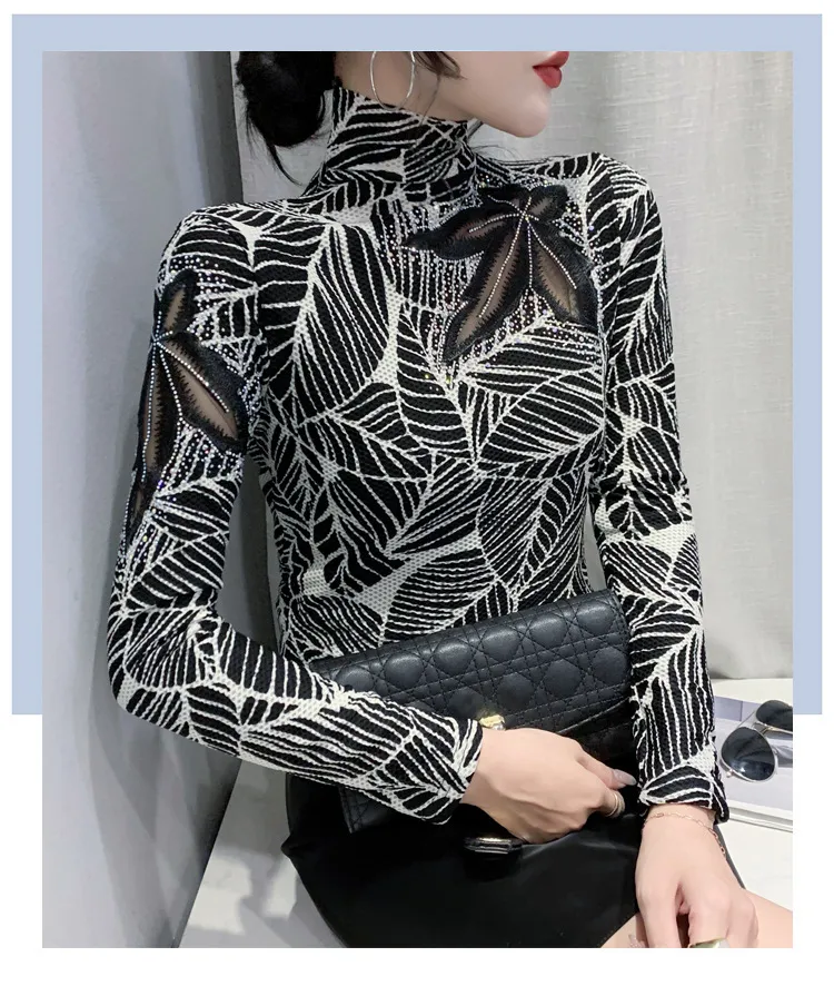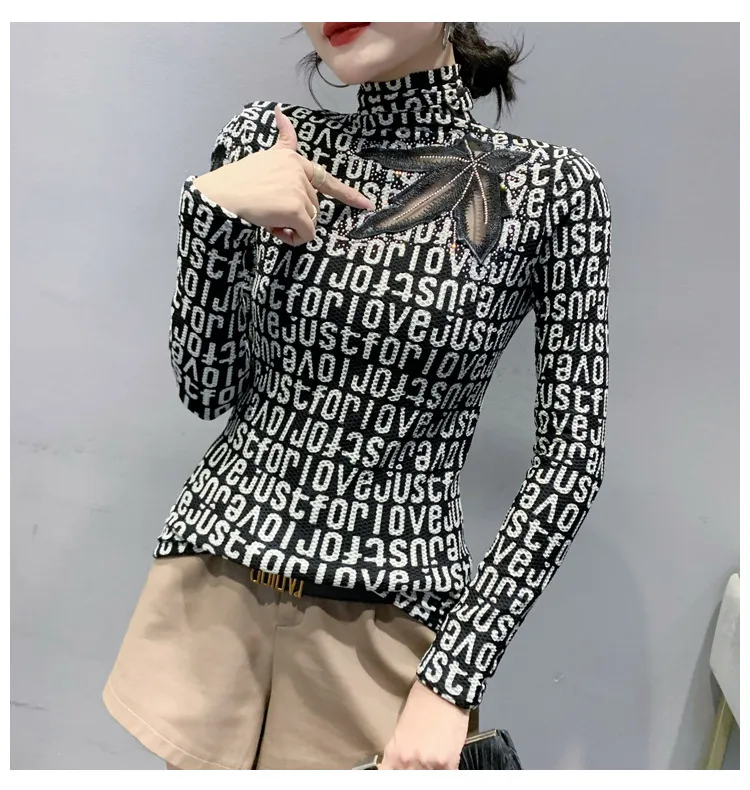 衣都精品- 2022冬季新款歐美輕熟風樹葉燙鑽內搭上衣