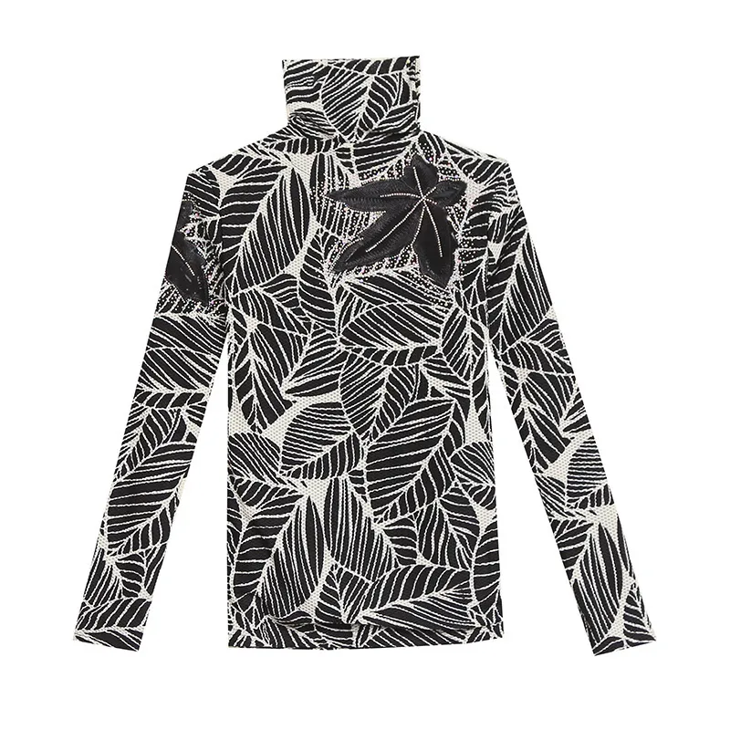 衣都精品- 2022冬季新款內搭羽毛印花高領彈力顯瘦上衣