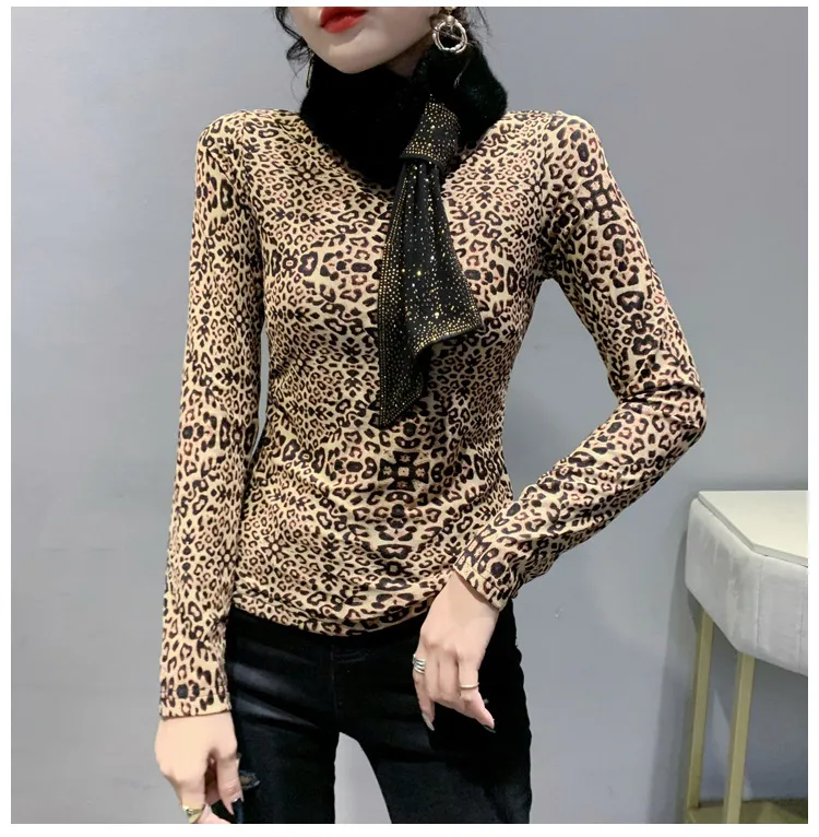 衣都精品- 2022冬季新款歐美輕熟風樹葉燙鑽內搭上衣
