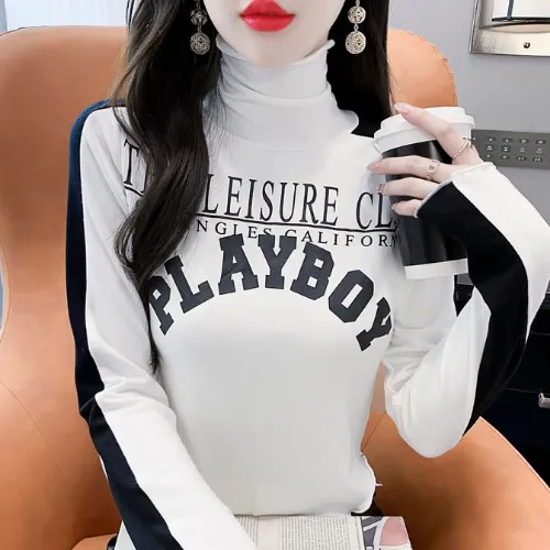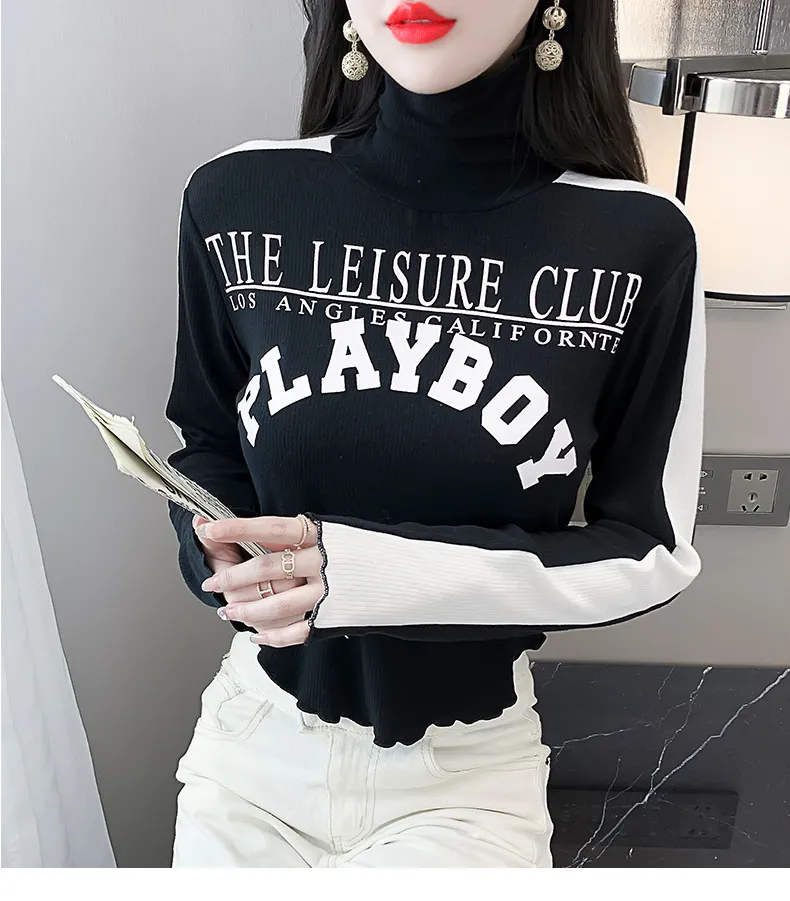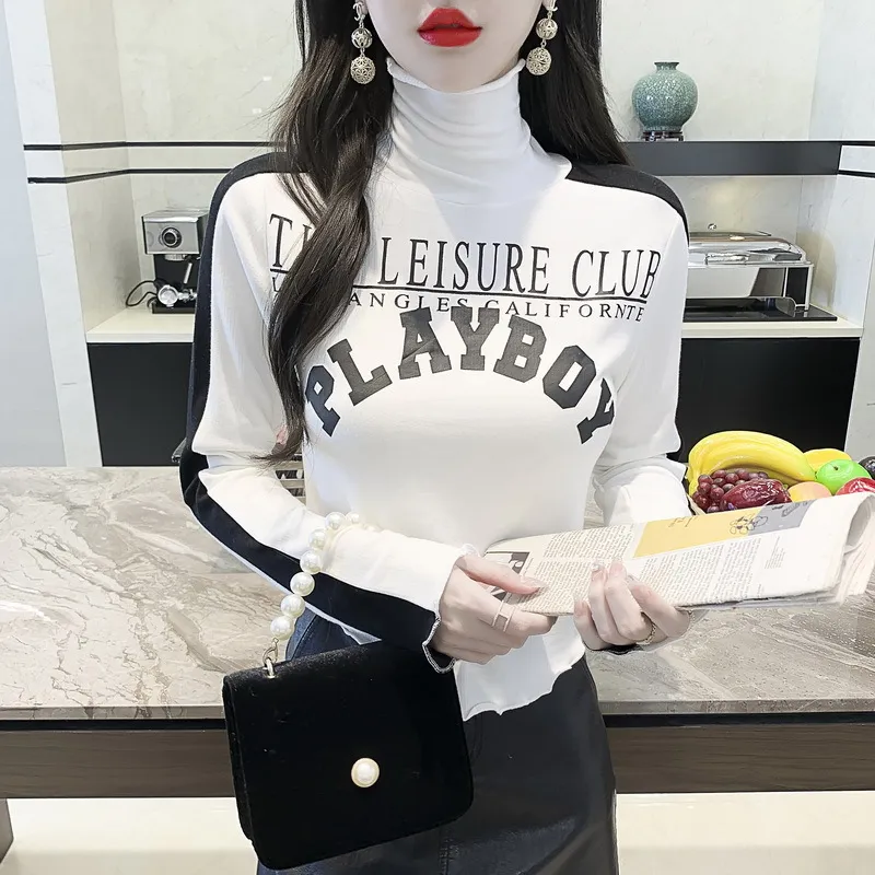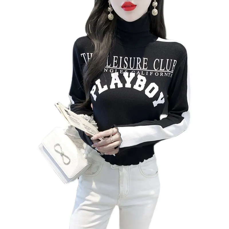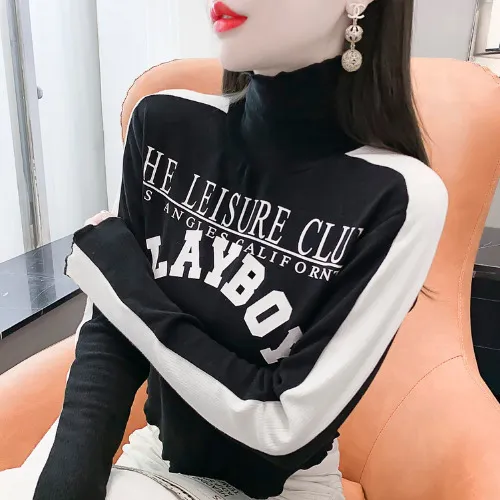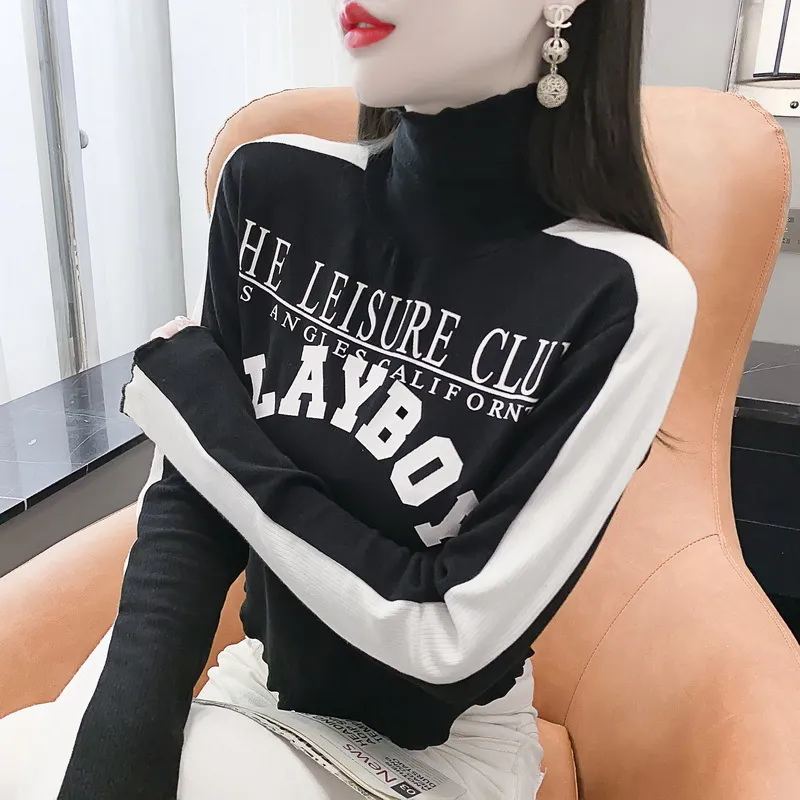 衣都精品- 2022冬季新款高彈力半高領字母抽象上衣