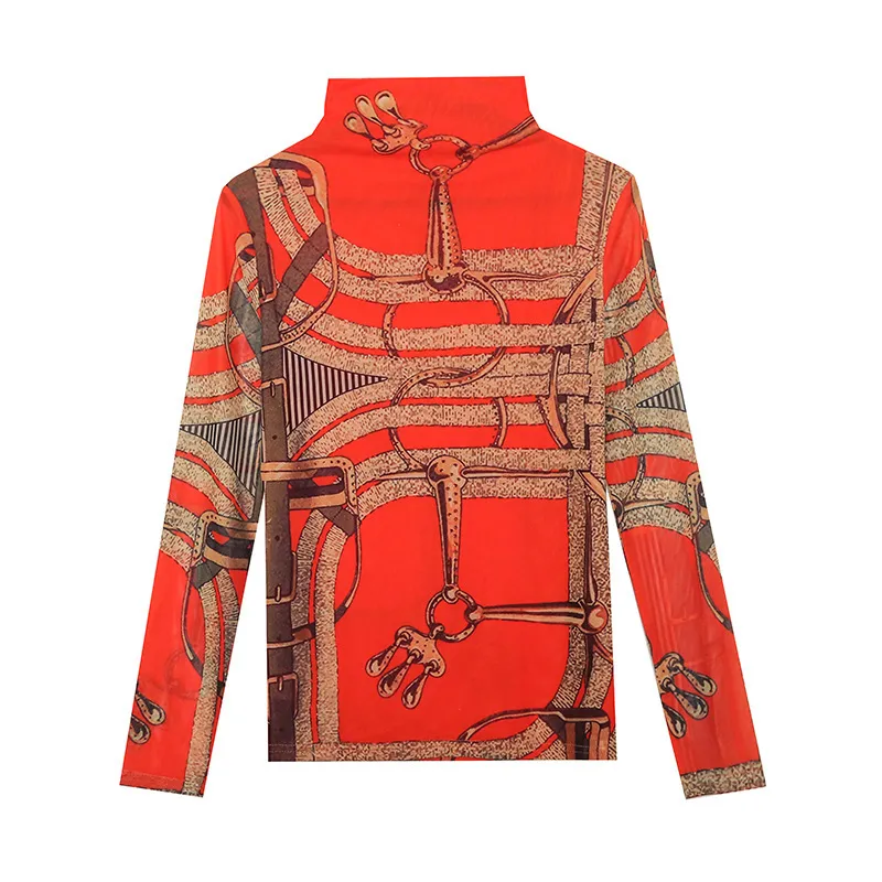 衣都精品- 2022冬季新款美式復古印花半高領上衣