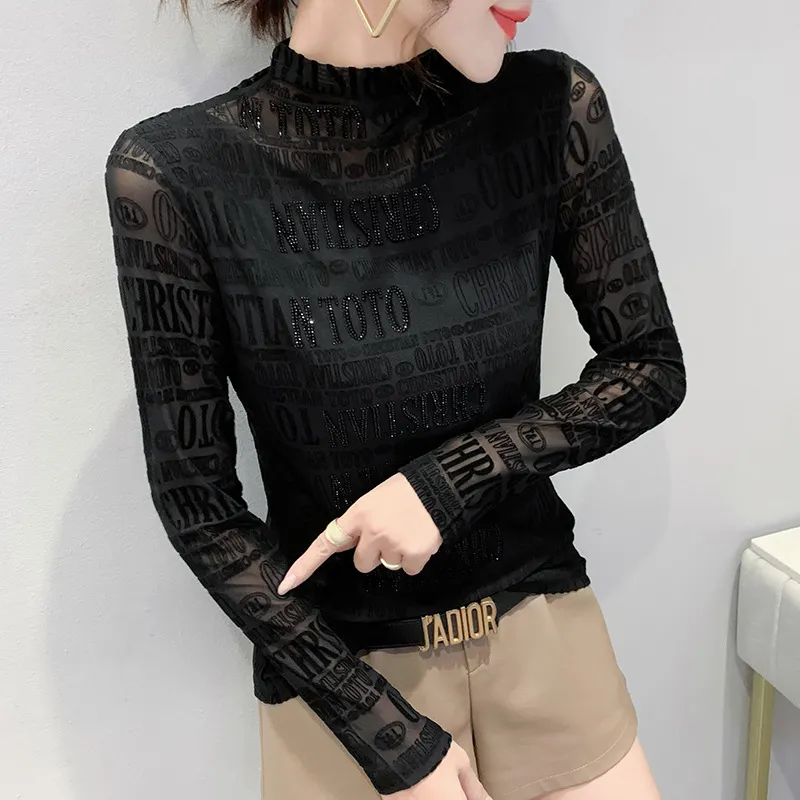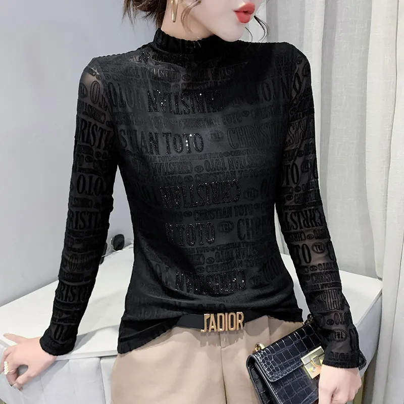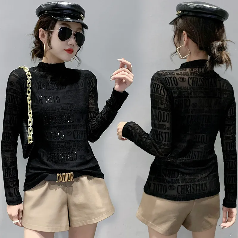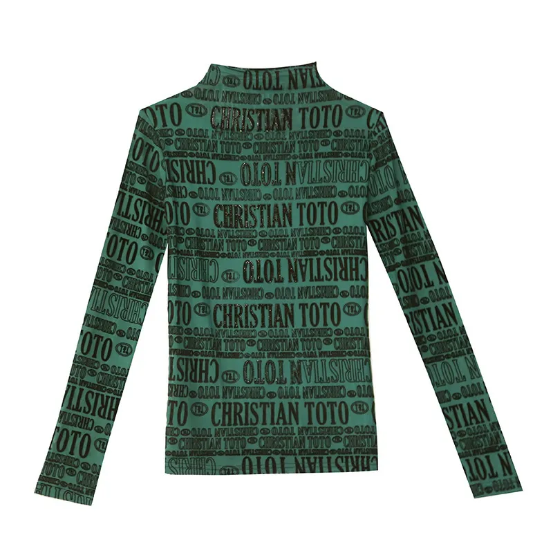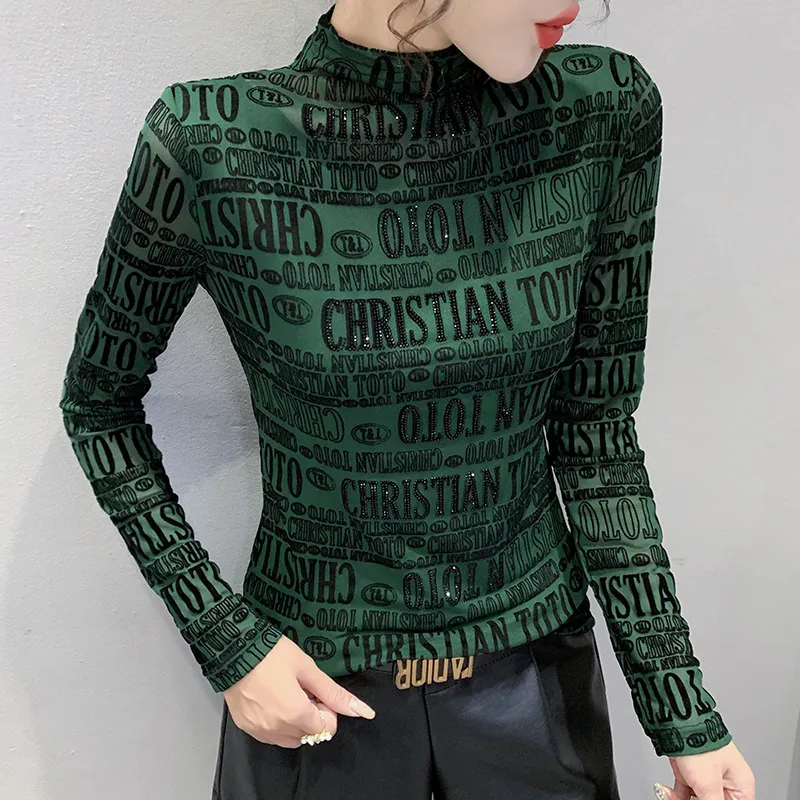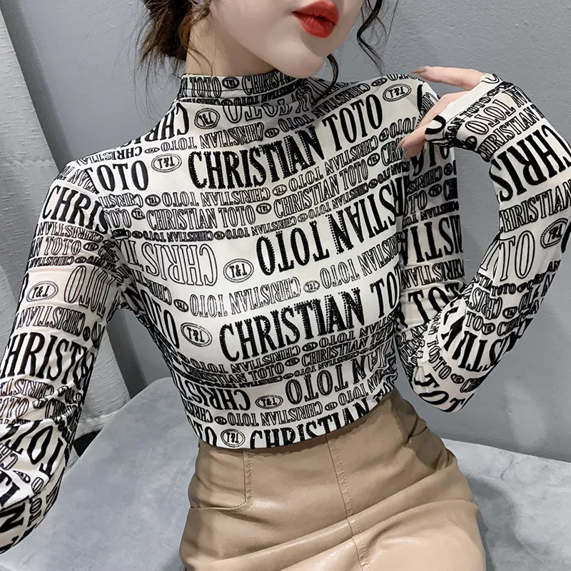 衣都精品- 2022冬季新款高彈力半高領字母抽象上衣