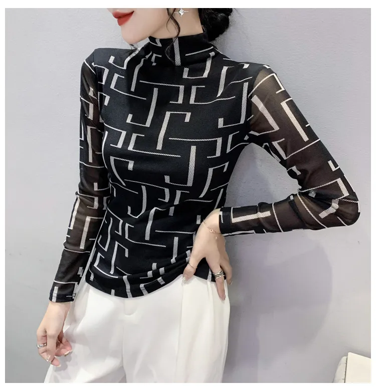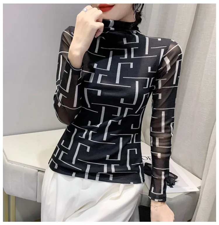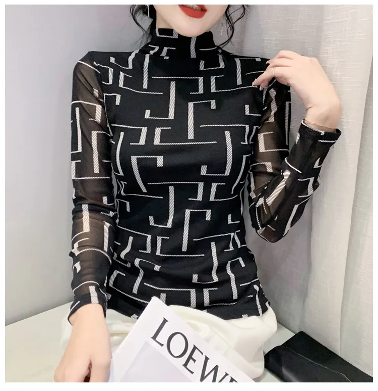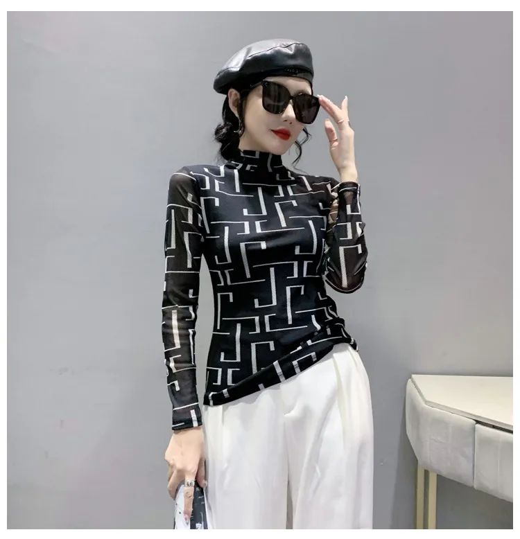 衣都精品- 2022冬季新款欧美风格纹印花高领上衣