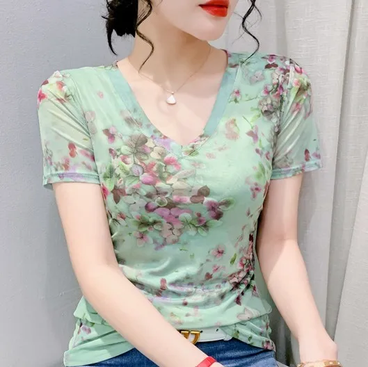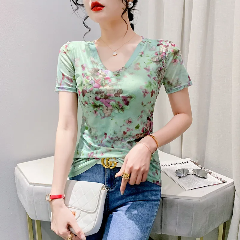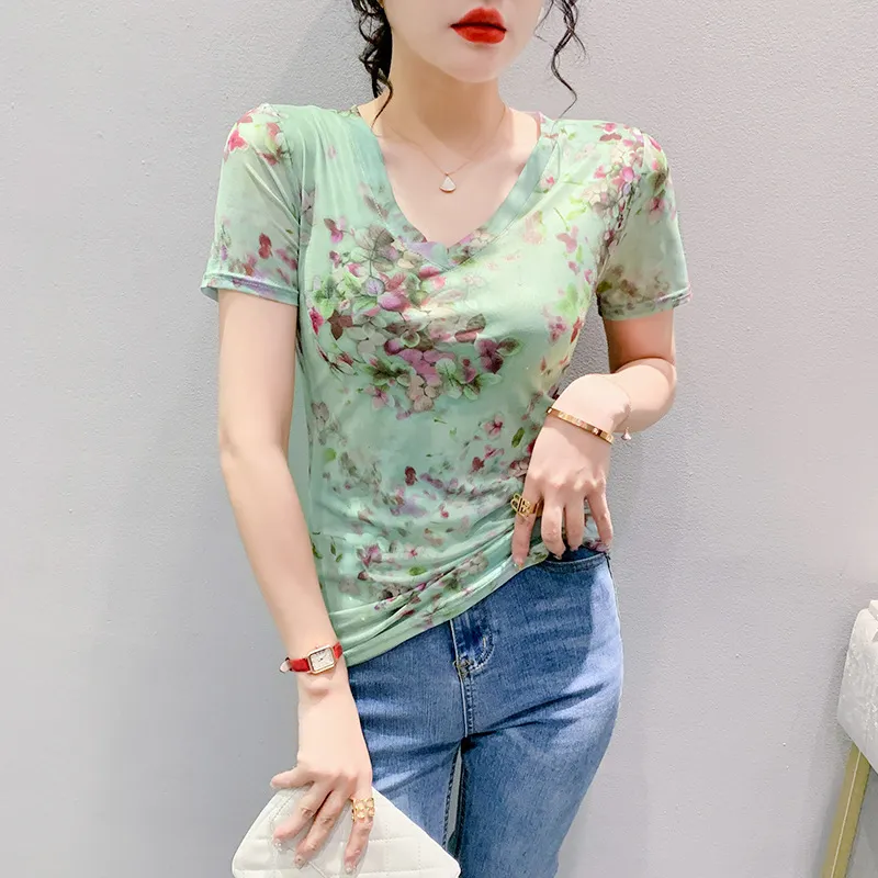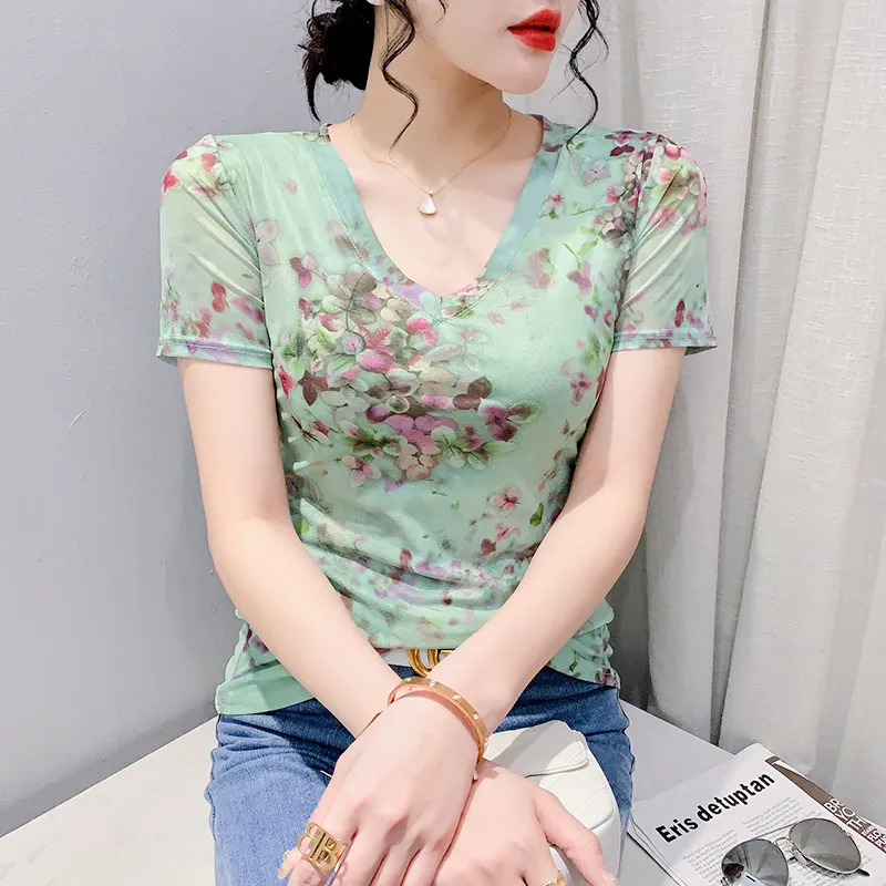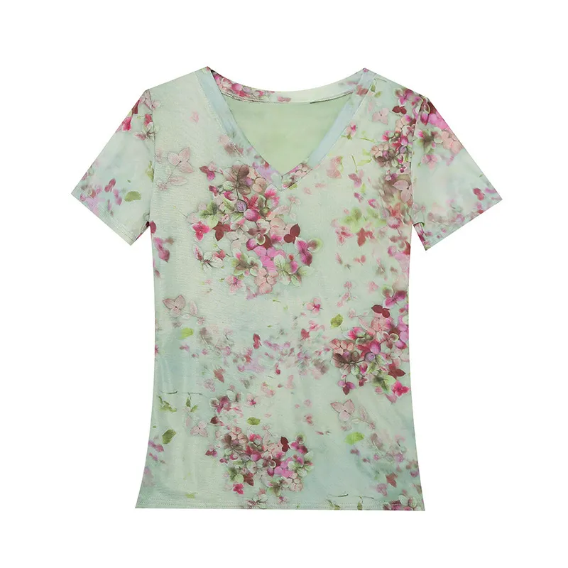 衣都精品- 2023新款田園風小清新數碼印花上衣