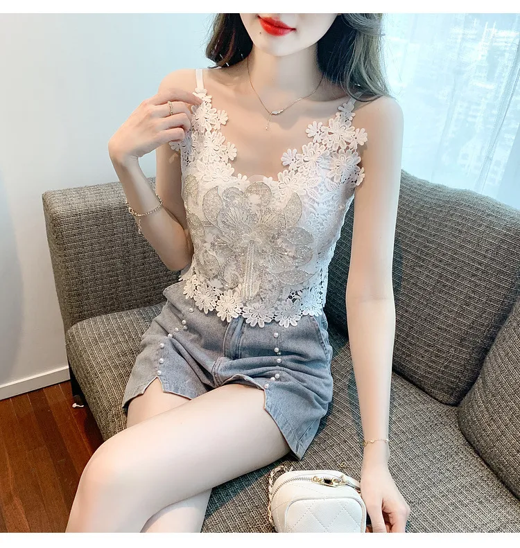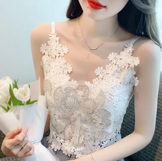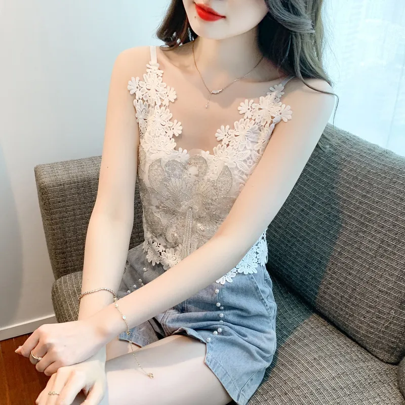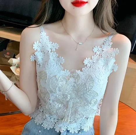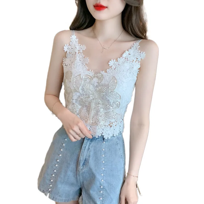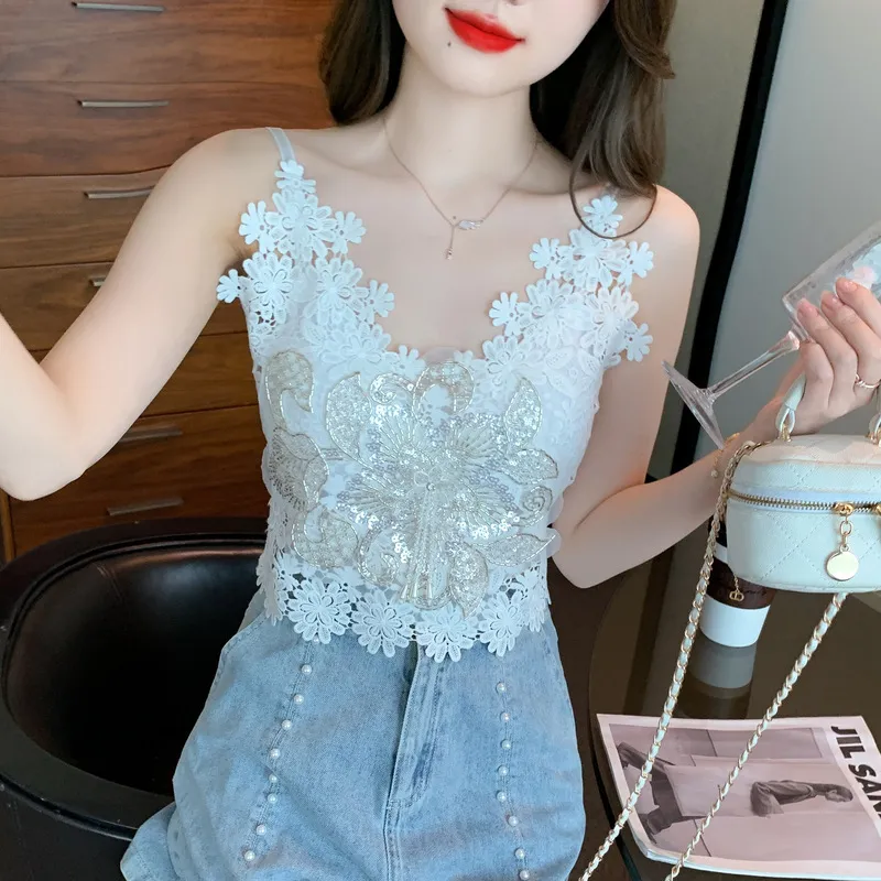 衣都精品- 2023新款亮片流蘇蕾絲內搭鏤空上衣