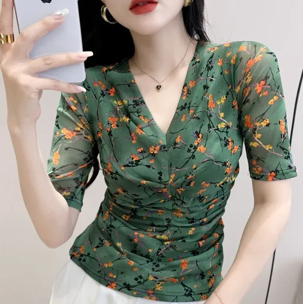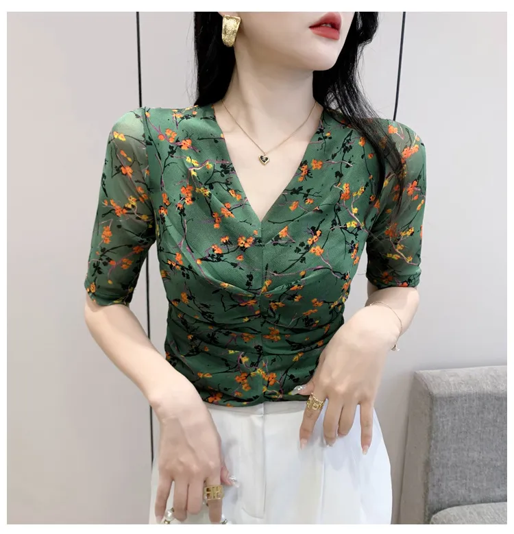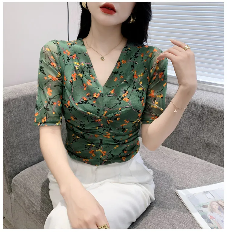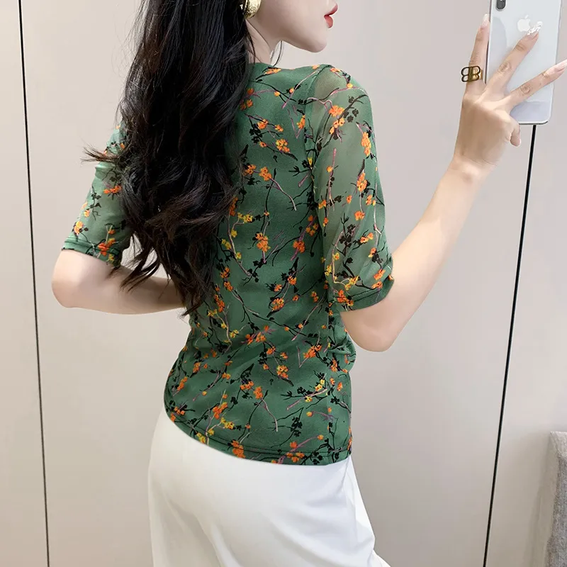 衣都精品- 2023新款田園風小清新碎花中袖上衣