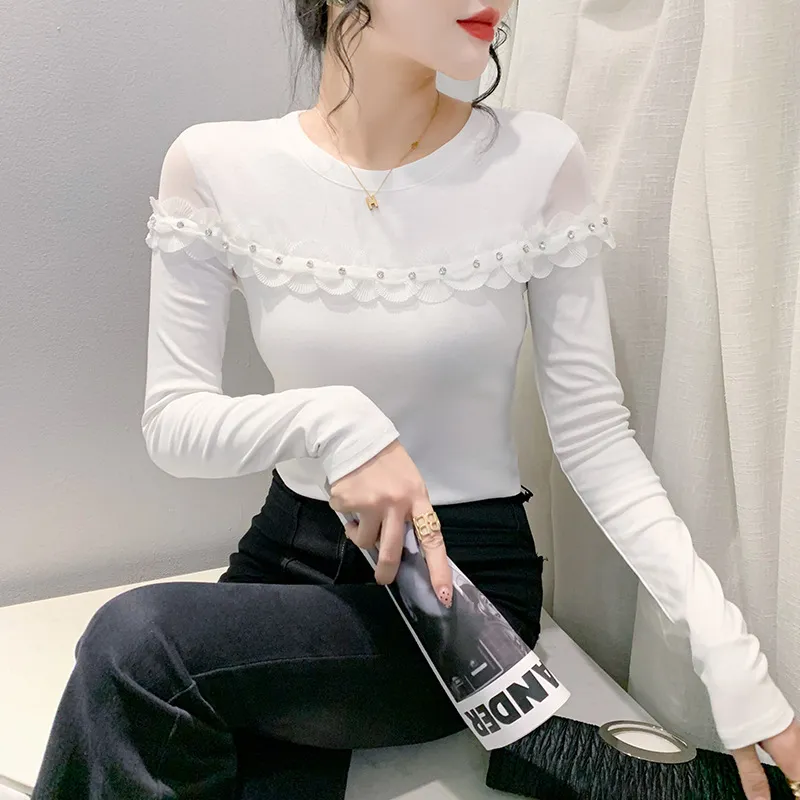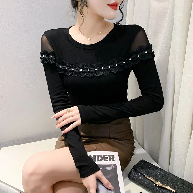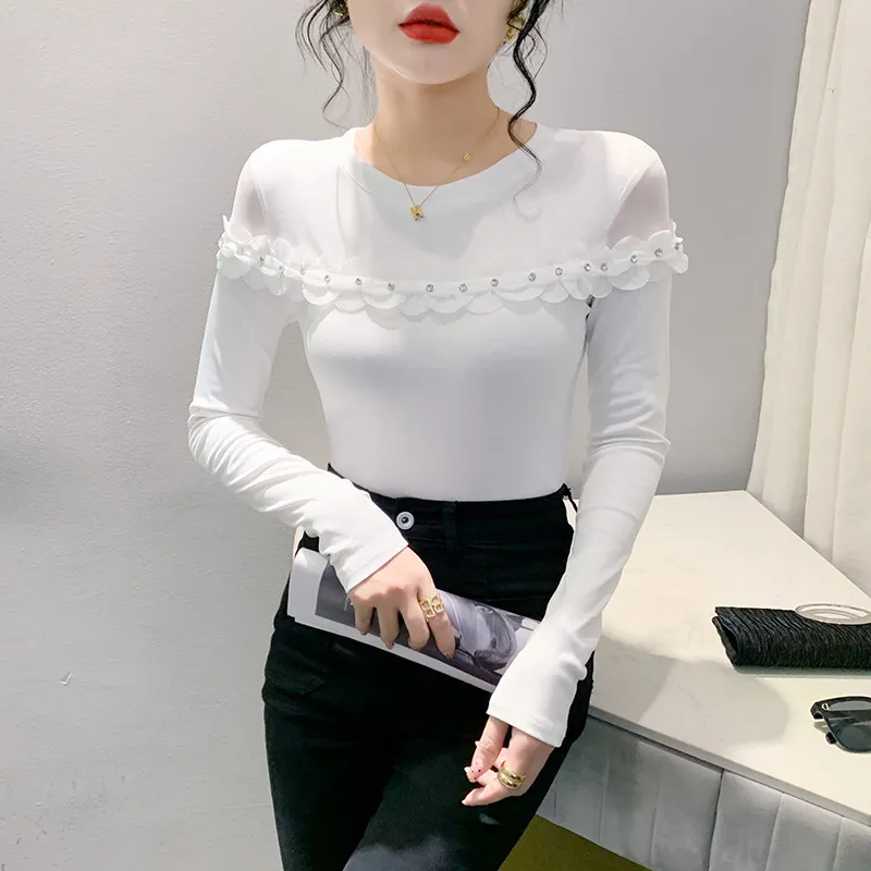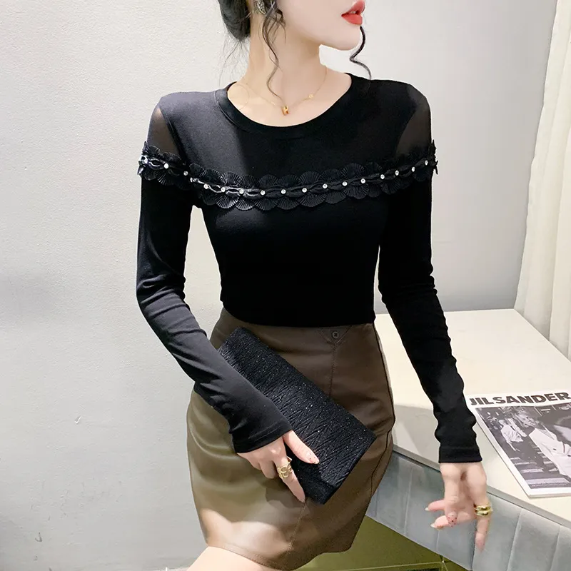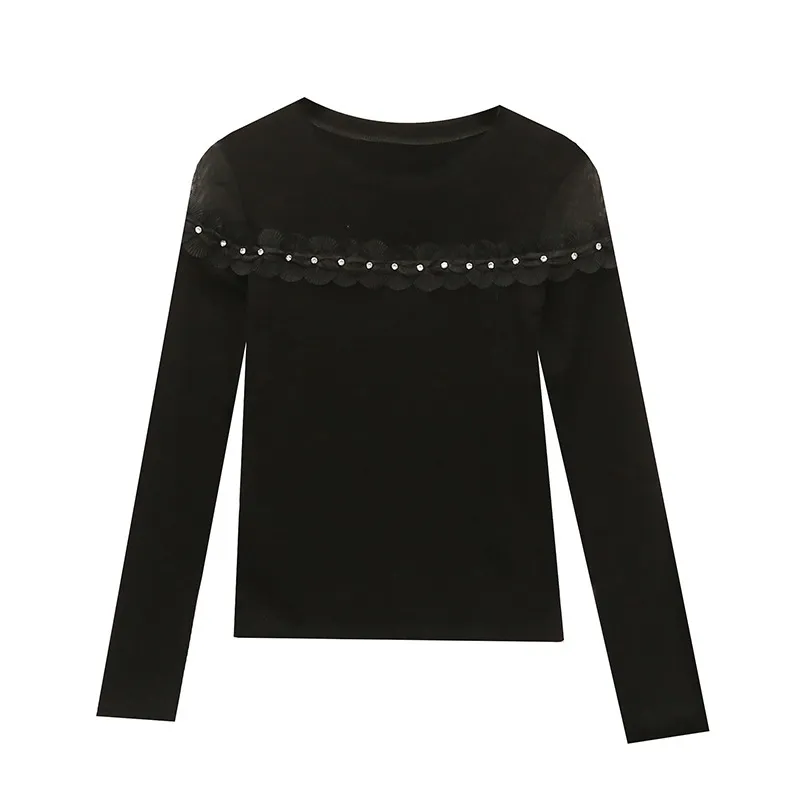 衣都精品- 2023新款歐風彩色花朵半高領打底小衫上衣