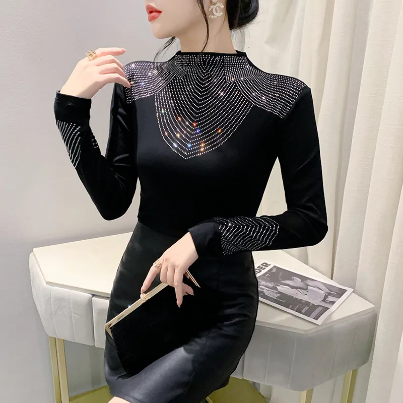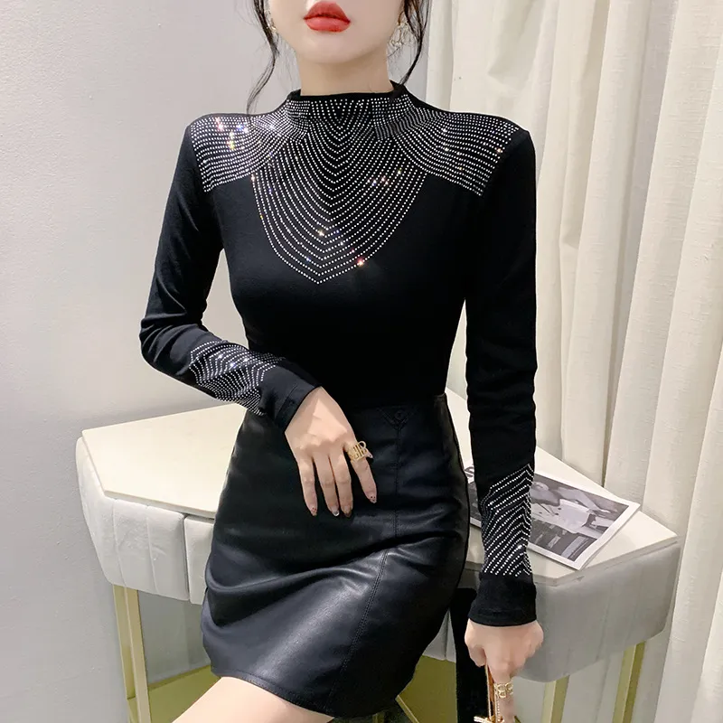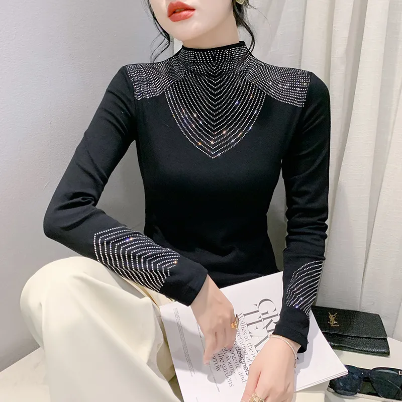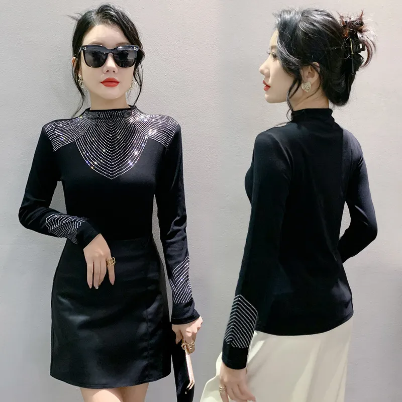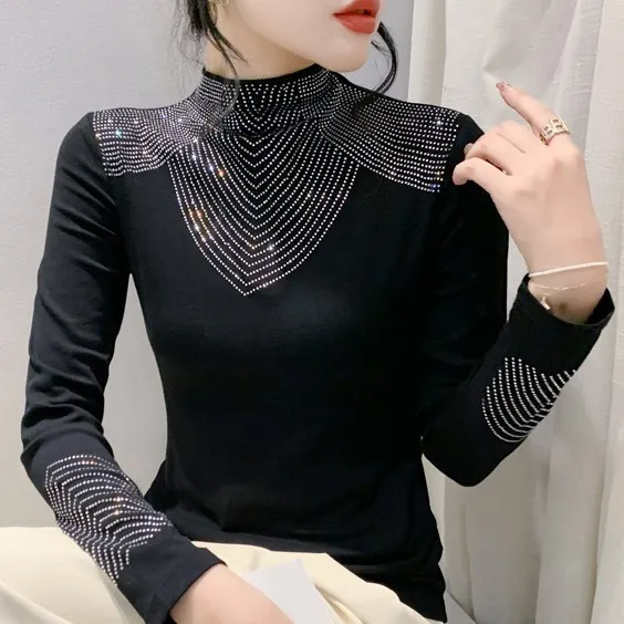 衣都精品- 2023新款重工貼鑽長袖修身大碼上衣
