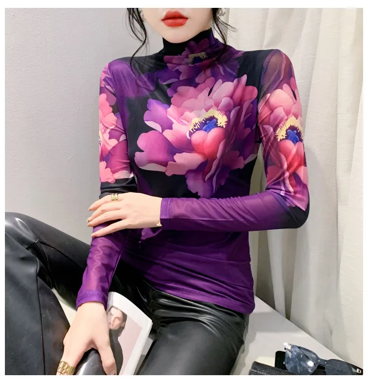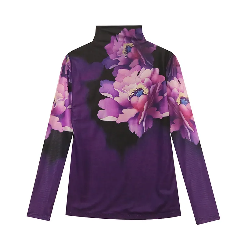 衣都精品- 2023新款歐風彩色花朵半高領打底小衫上衣