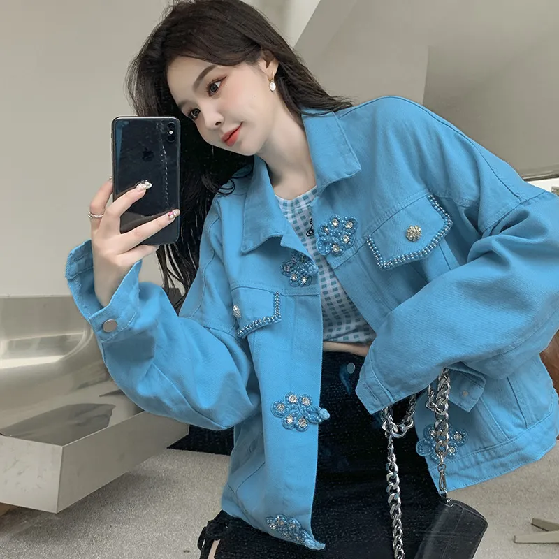 衣都精品- 2023新款中國風鑲鑽盤扣牛仔外套
