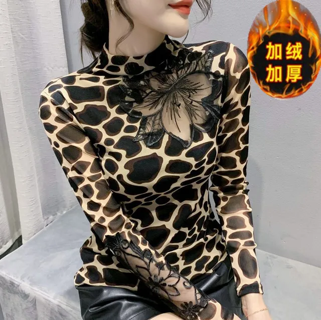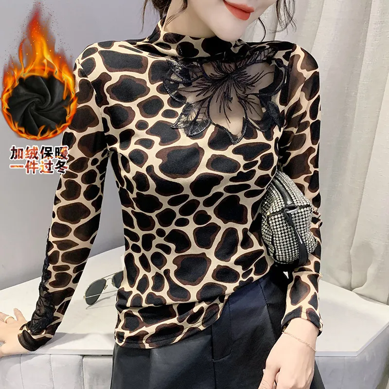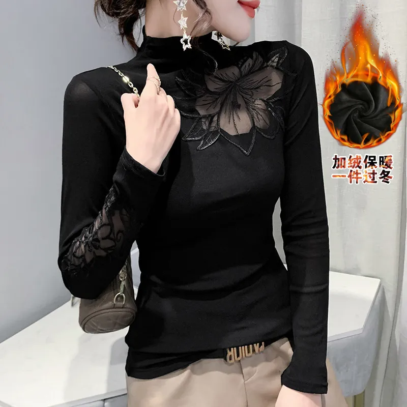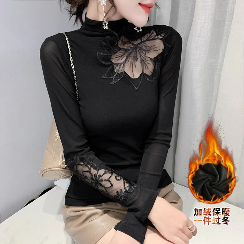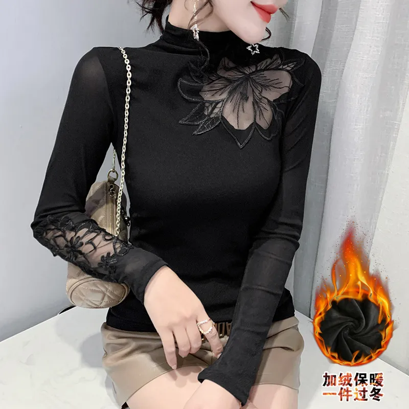 衣都精品- 2023新款歐美網紗花朵拼接加絨上衣