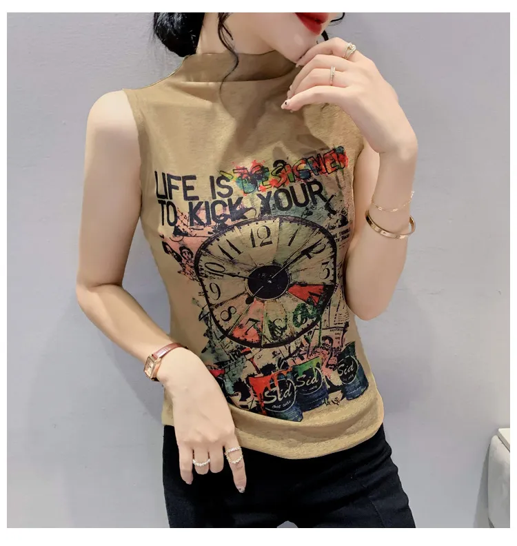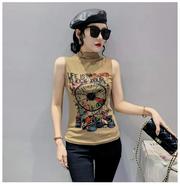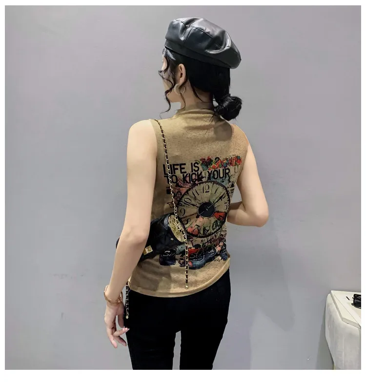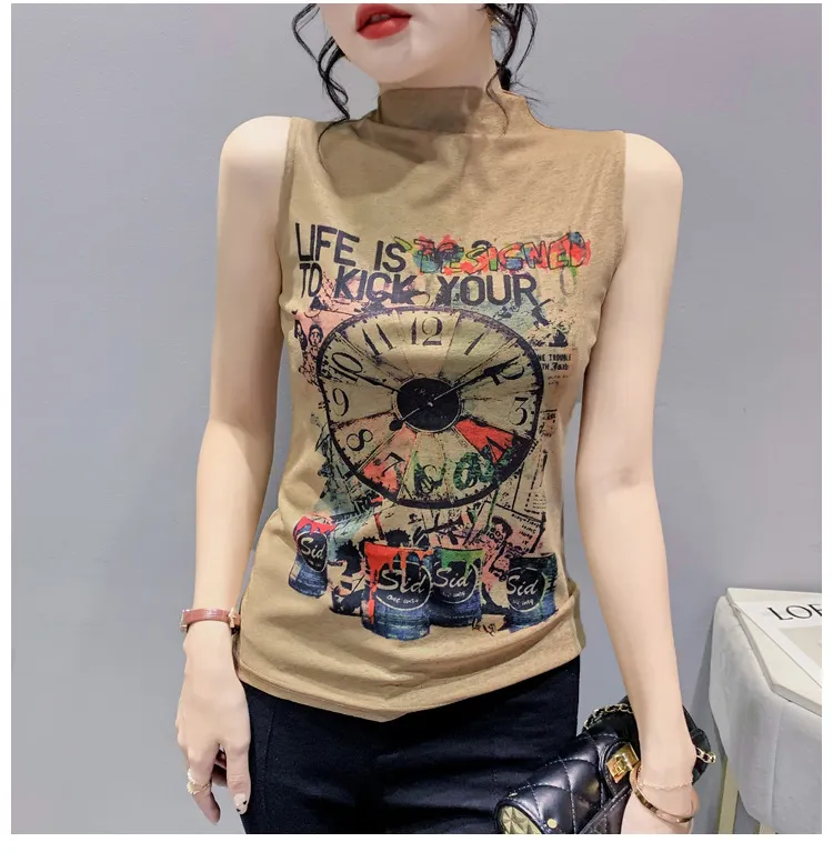 衣都精品- 新款復古時鐘印花小背心大碼上衣