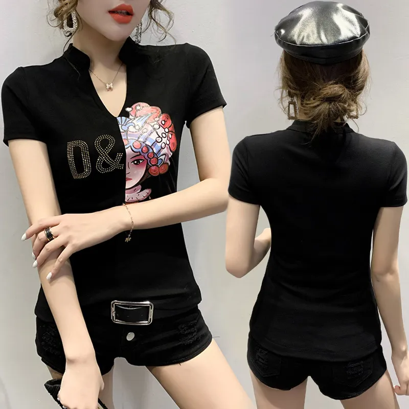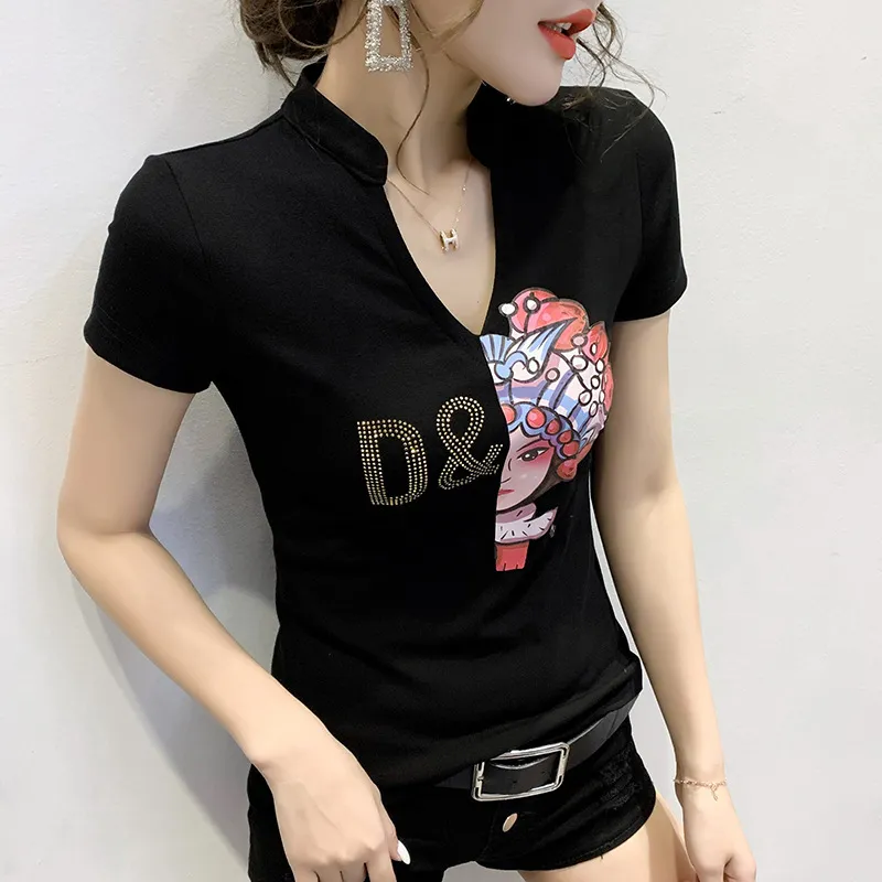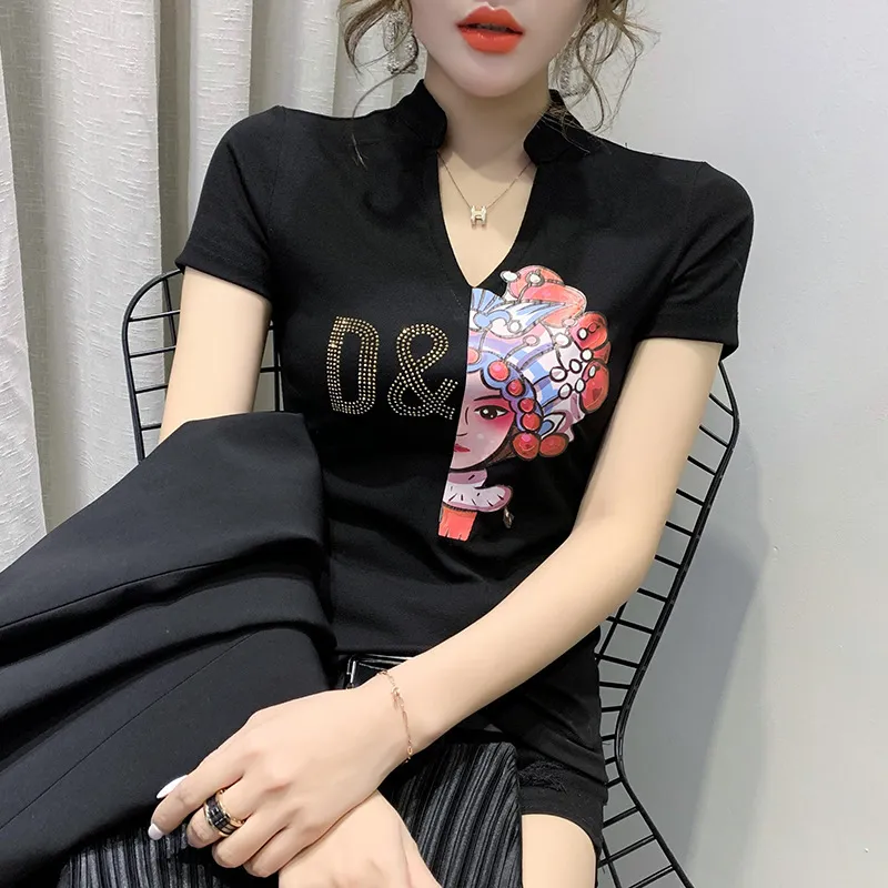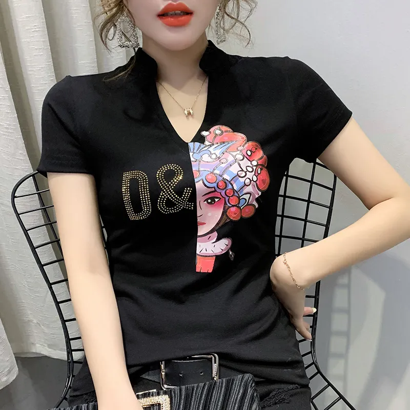 衣都精品- 新款民族風臉譜圖案字母燙鑽上衣