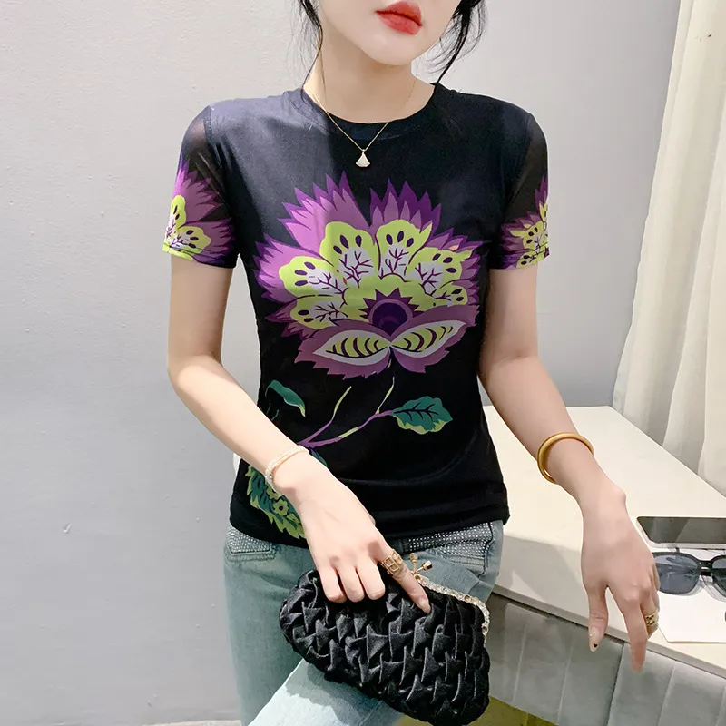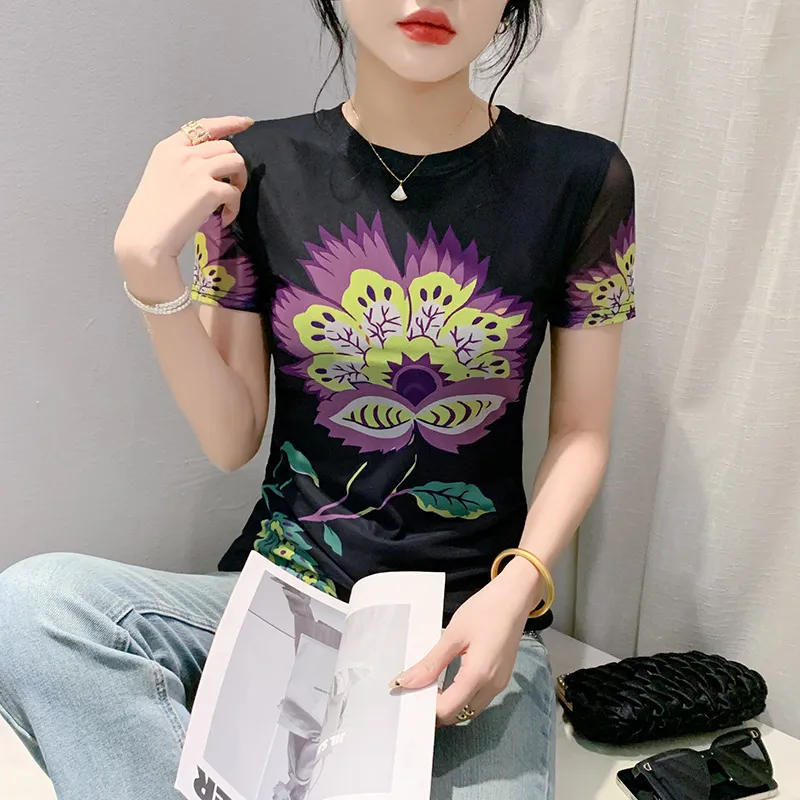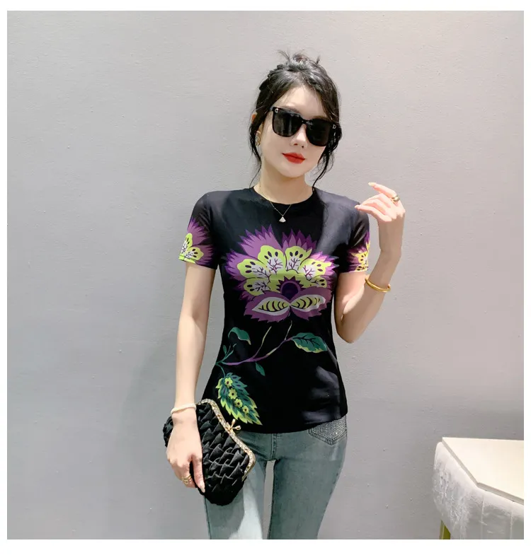 衣都精品- 新款數碼印花短袖修身顯瘦上衣