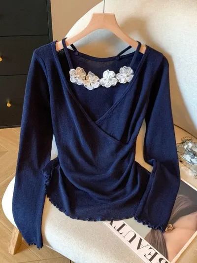 衣都精品- 新款溫柔辣妹風木耳邊針織衫上衣