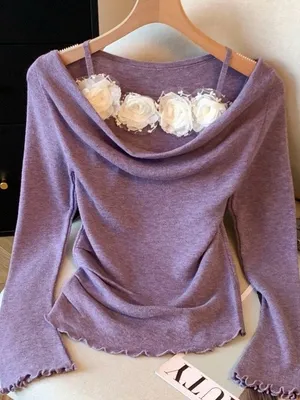 衣都精品- 新款立體小花朵吊帶假兩件針織衫上衣