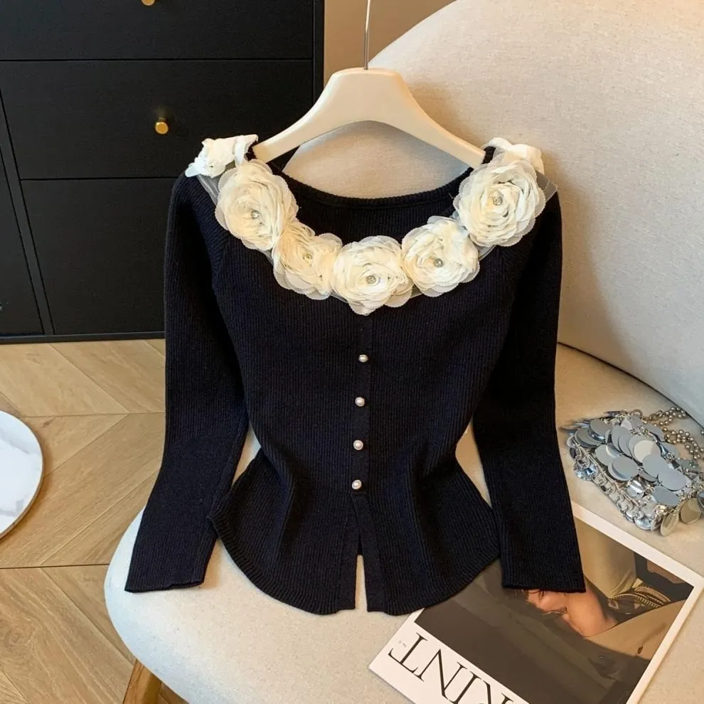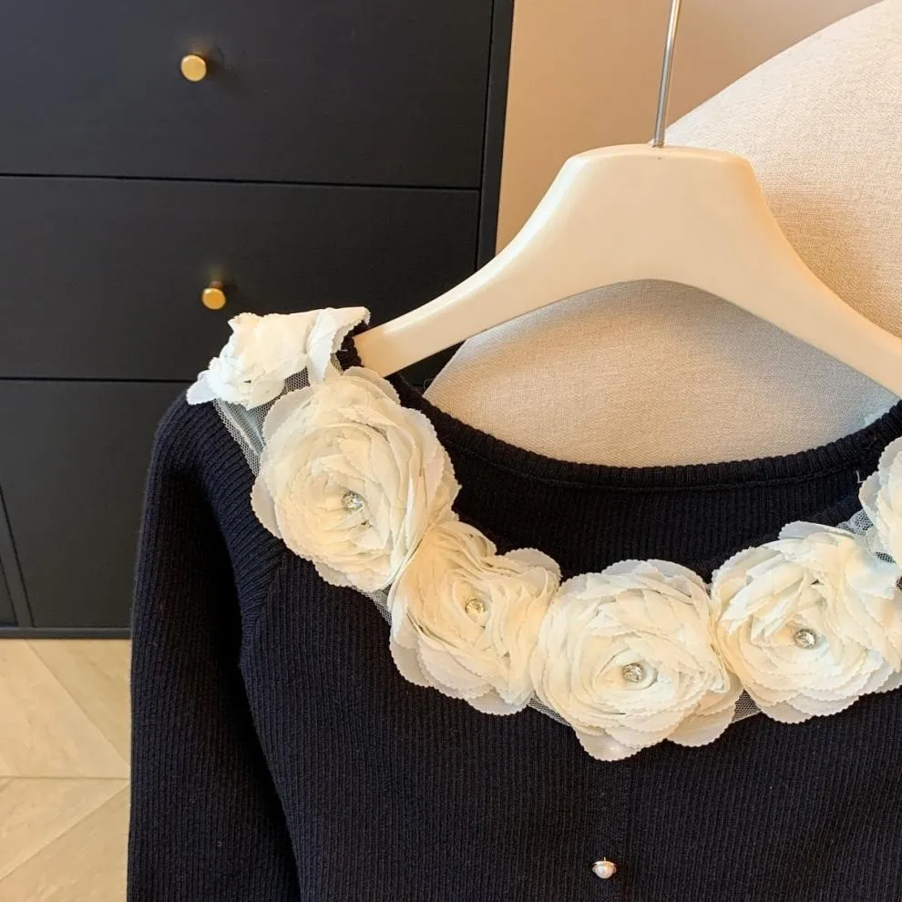 衣都精品- 新款赫本風氣質優雅立體玫瑰花朵上衣