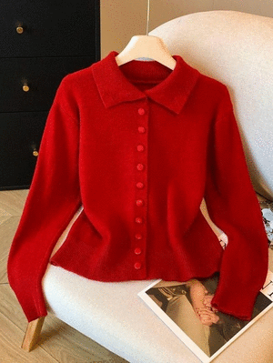 衣都精品- 新款慵懶風高級感單排扣純色毛衣上衣