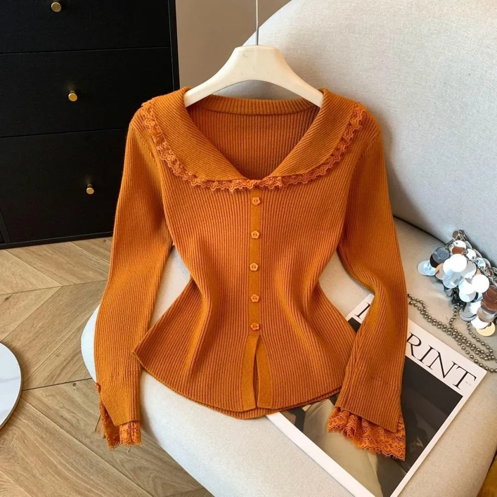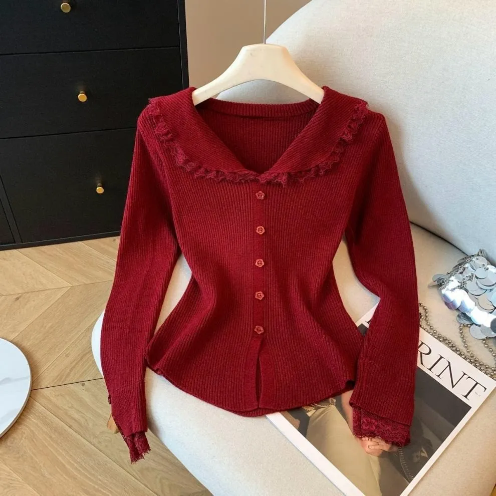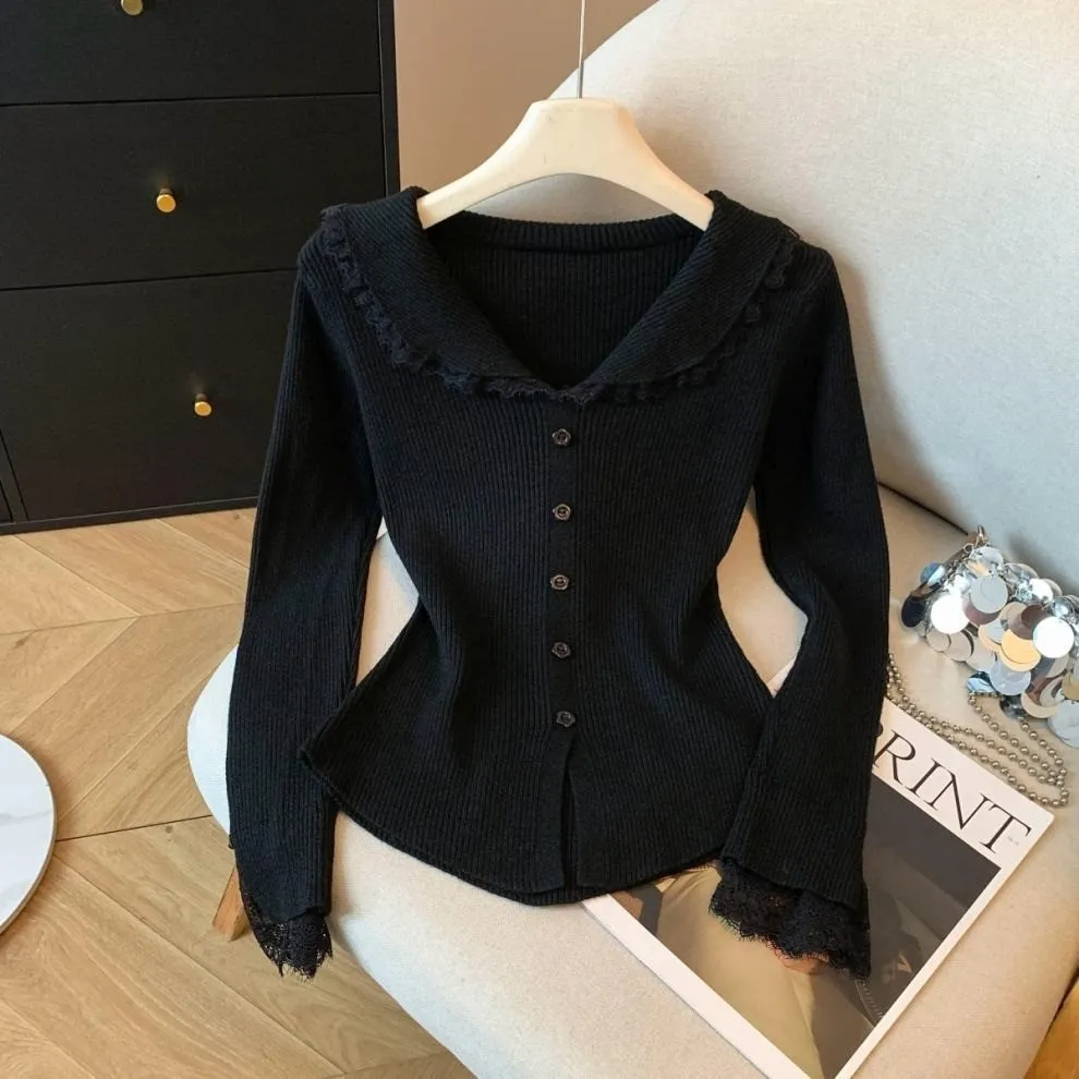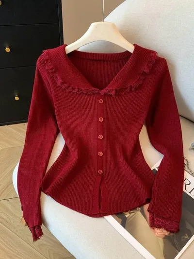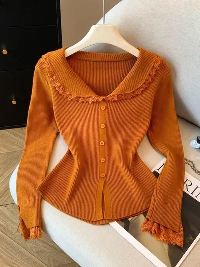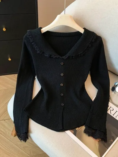 衣都精品- 新款溫柔辣妹風木耳邊針織衫上衣