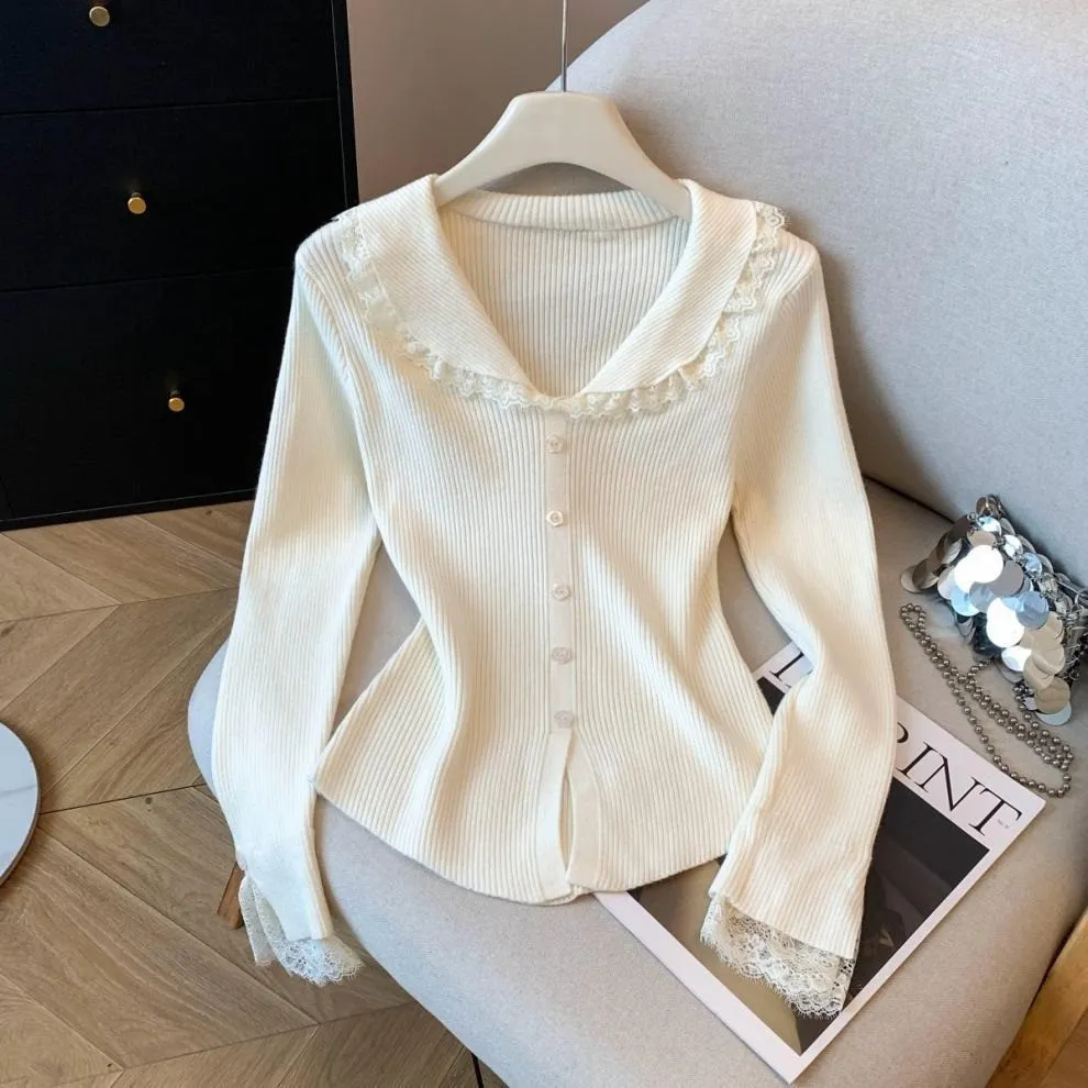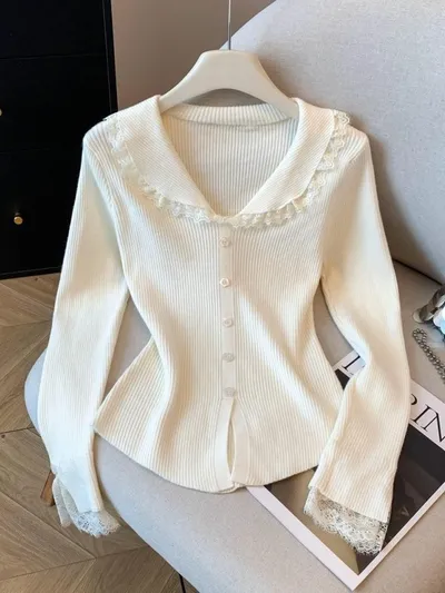 衣都精品- 新款甜辣風蕾絲花邊拼接娃娃領上衣