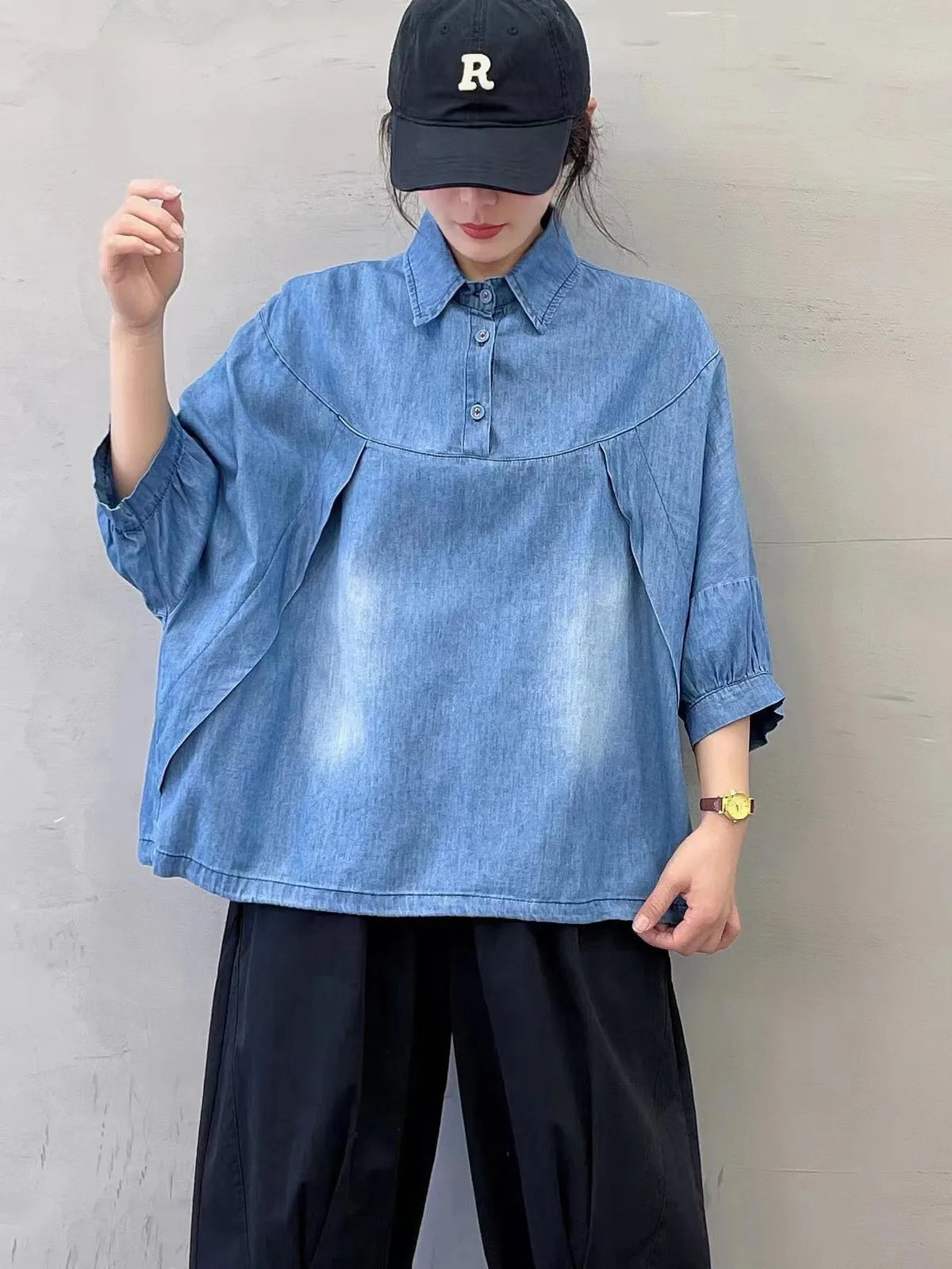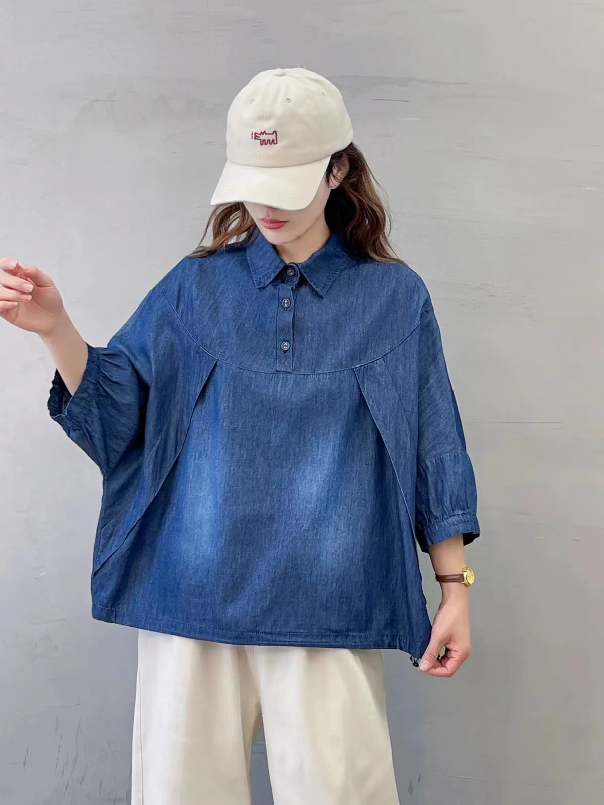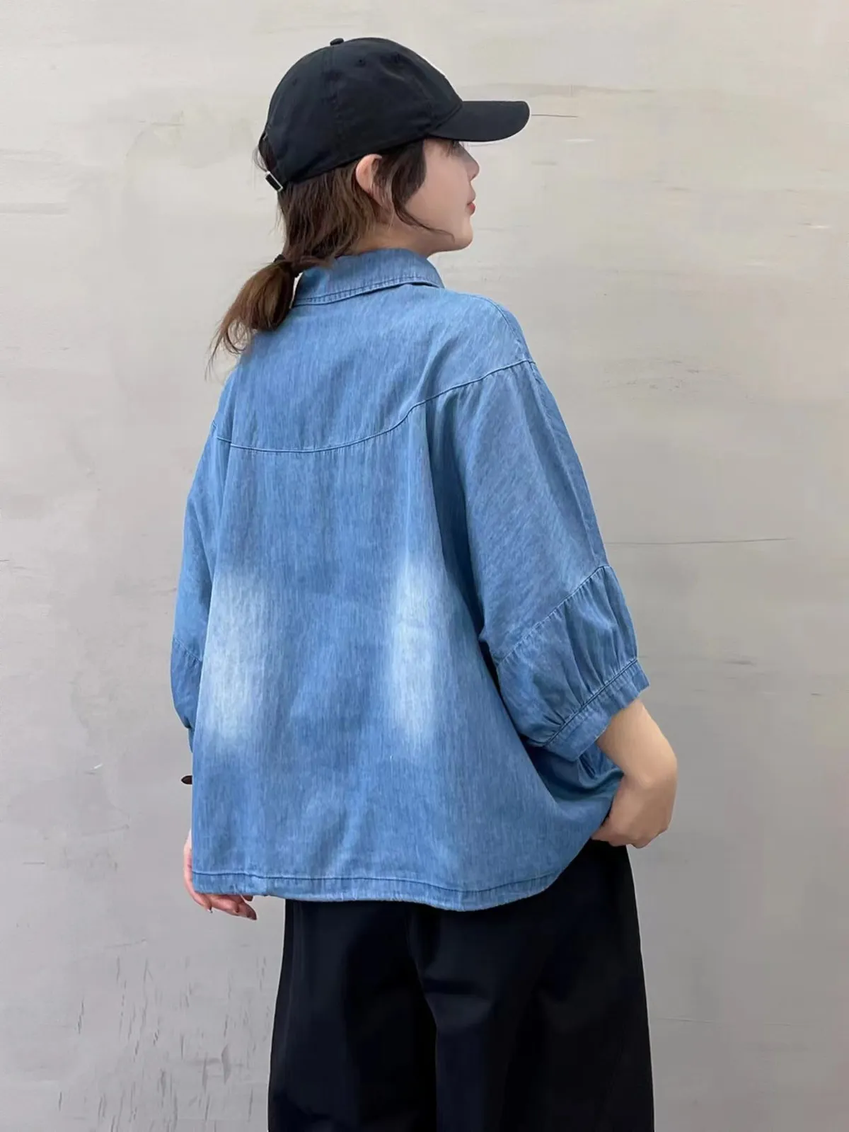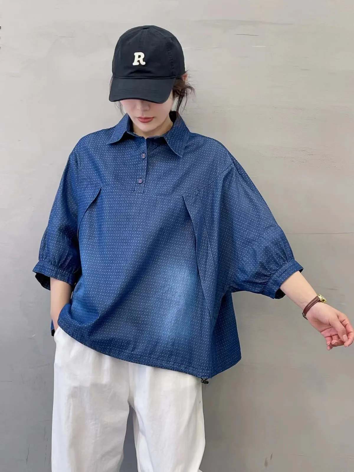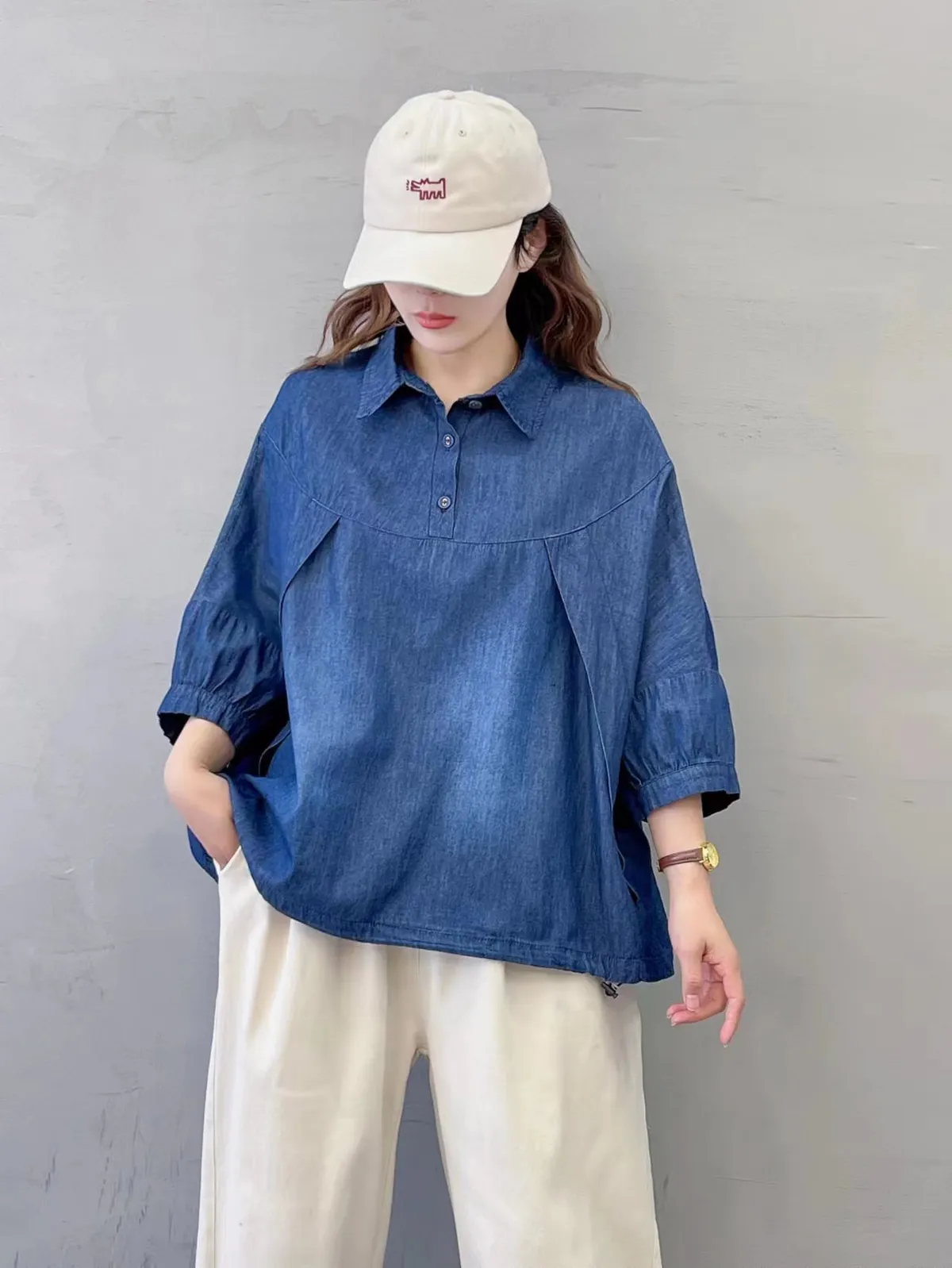 衣都精品- 2023新款復古休閒寬鬆翻領水洗上衣