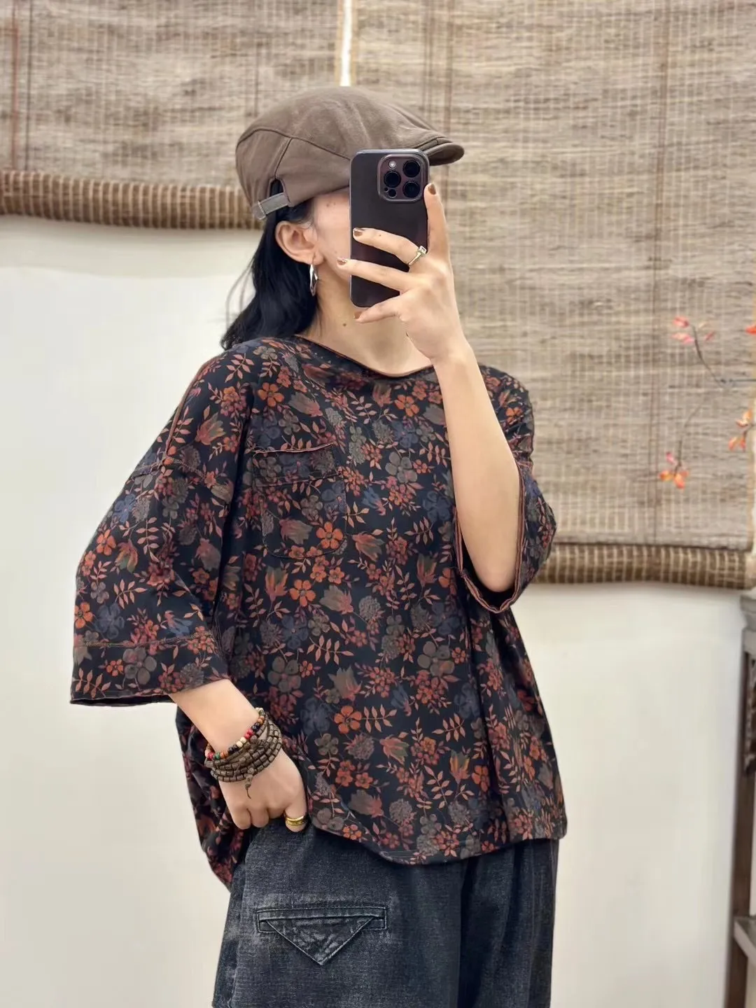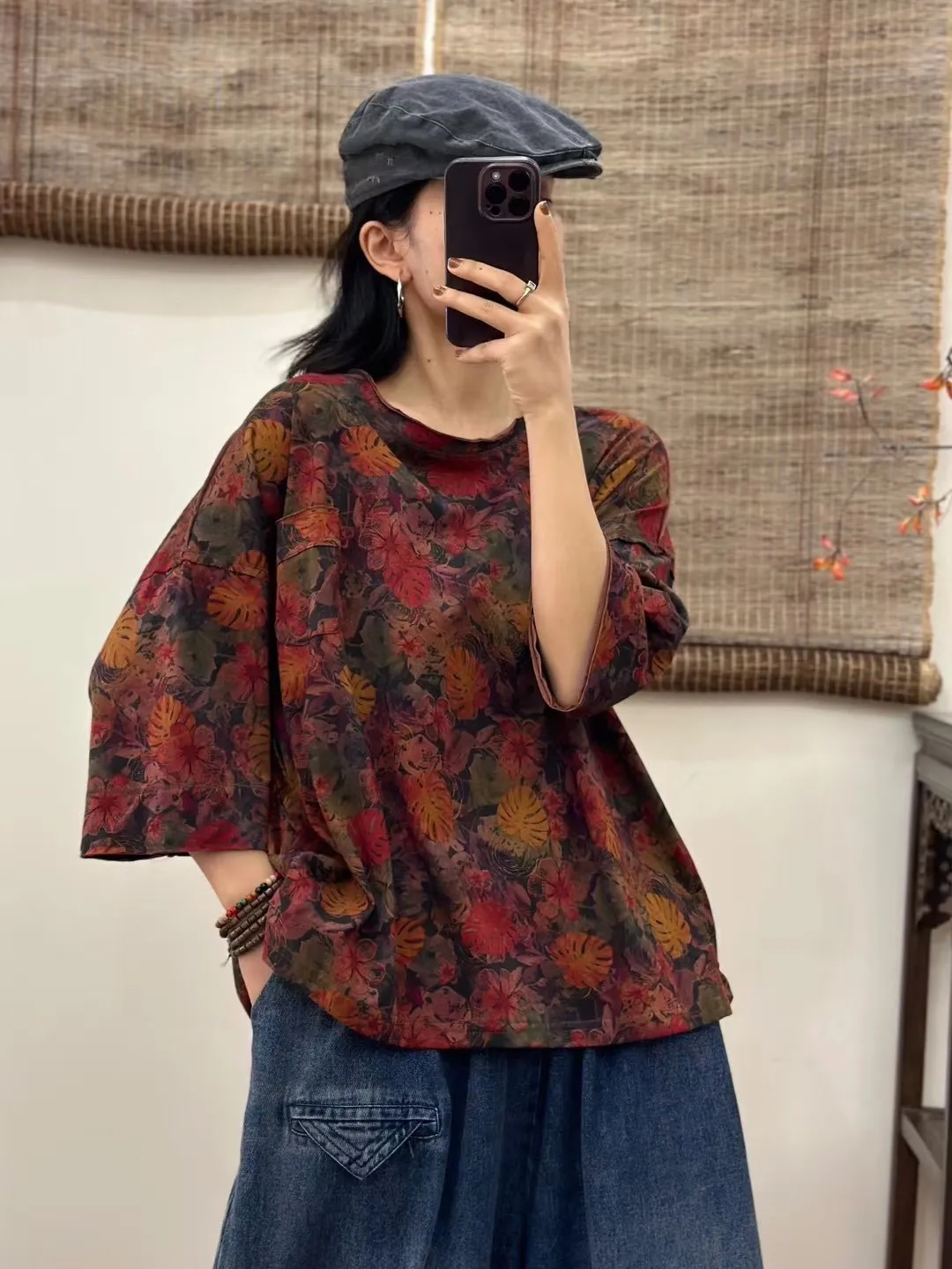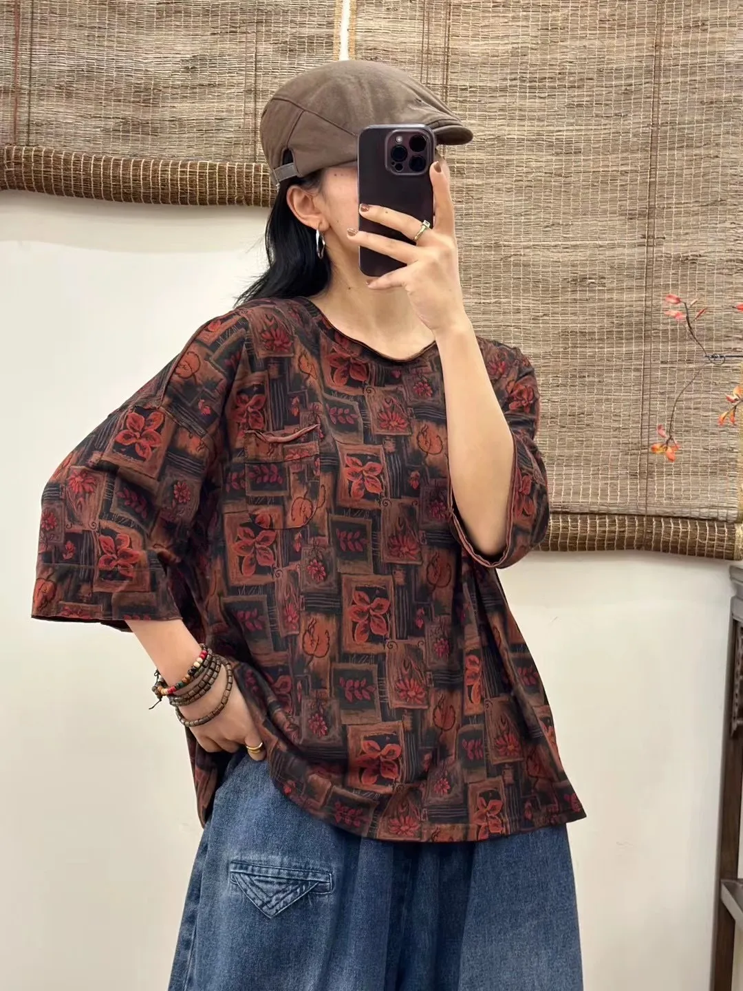 衣都精品- 2023新款復古炒色寬鬆圓領短袖上衣