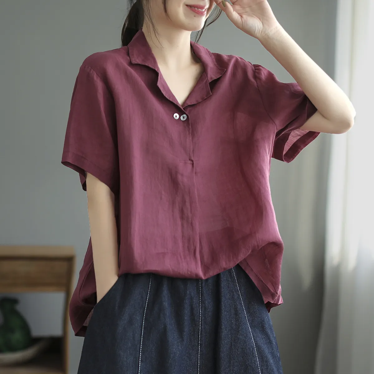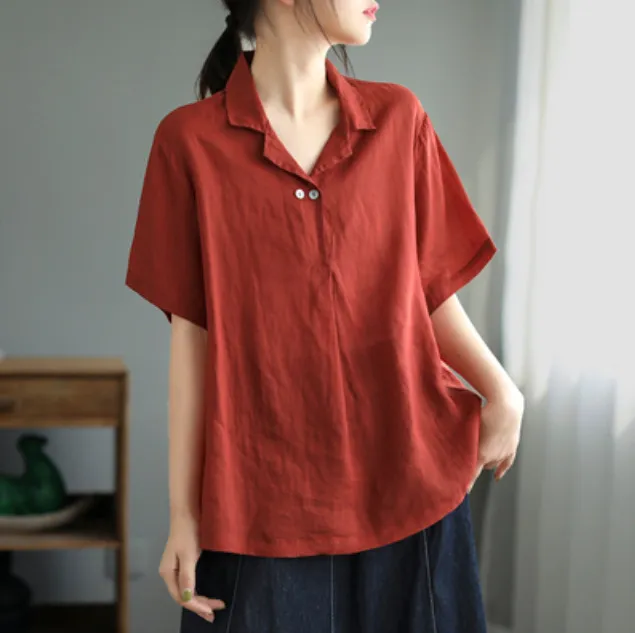 衣都精品- 2023新款復古炒色寬鬆圓領短袖上衣